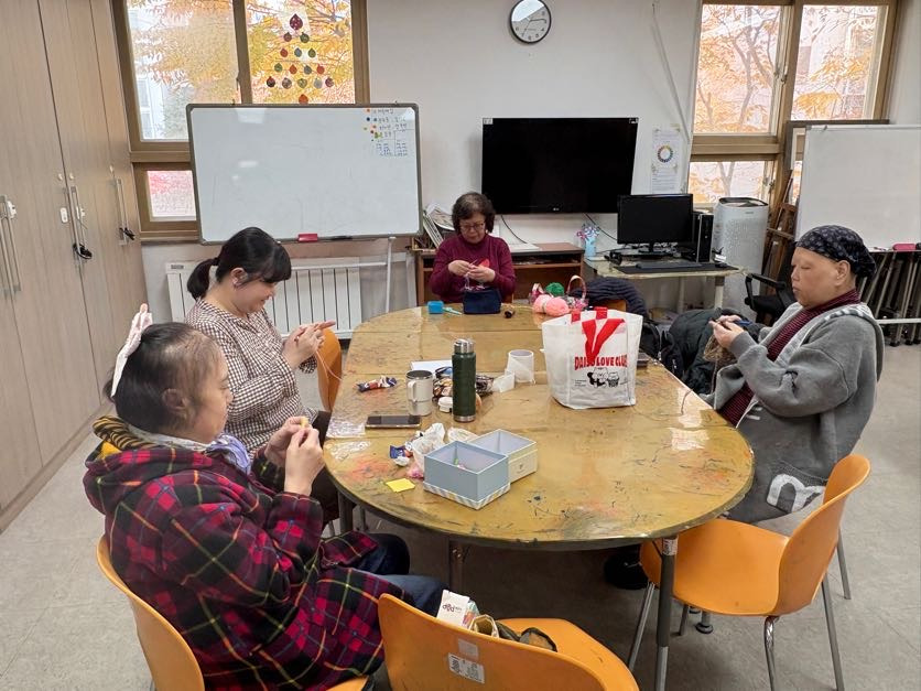 수다공예방 모임은 매주 수요일 9시부터 12시까지 2층 자람터에서 모임을 이어가고 계십니다.