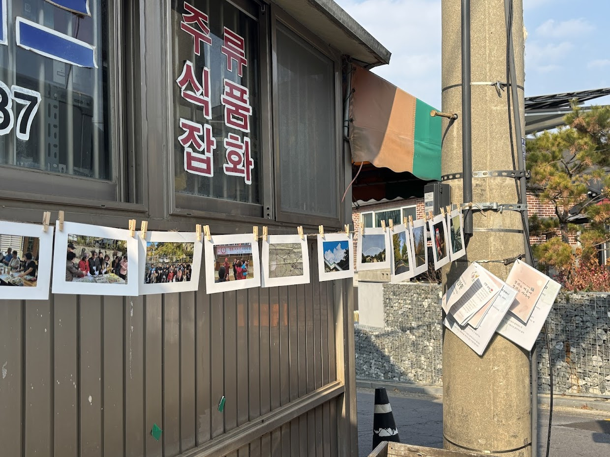책 일부와 한 해 동안 주민과 함께했던 순간을 기록한 사진을 동네 곳곳에 전시했습니다. 윤뜰카페, 경로당, 우리마트, 꽃이피는교회 등 공간을 내어주신 주민들께 고맙습니다.