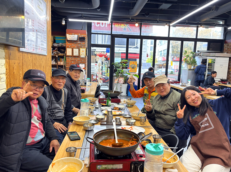 단합활동 당일입니다. 회원님들과 함께 개화산역 근처 김치찌개집에서 맛있는 점심을 먹으며 이야기 나눴습니다.