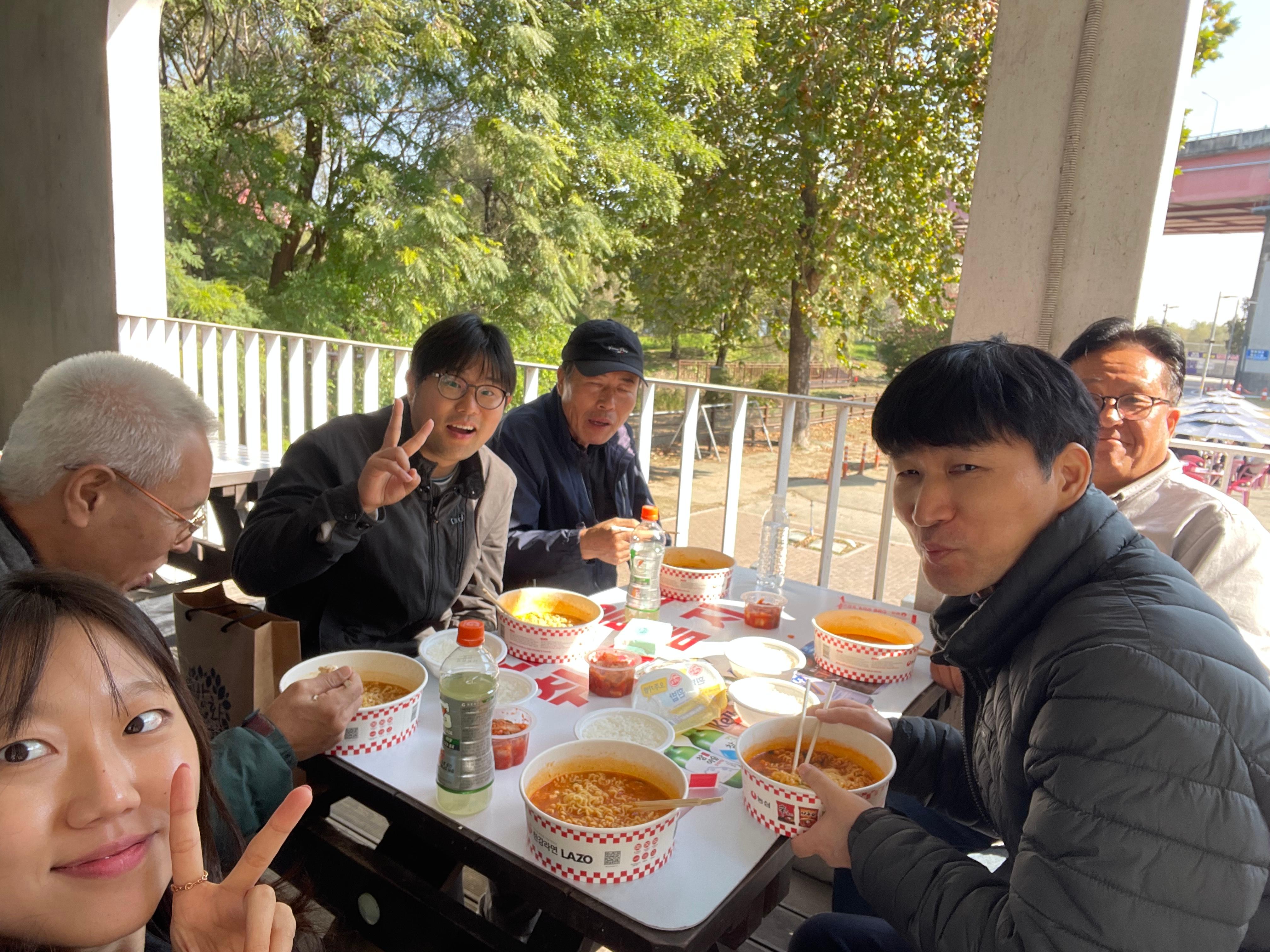 선생님들과 한 식탁에 둘러앉아 라면을 나누어 먹으며 나들이의 소감을 여쭤봤습니다.