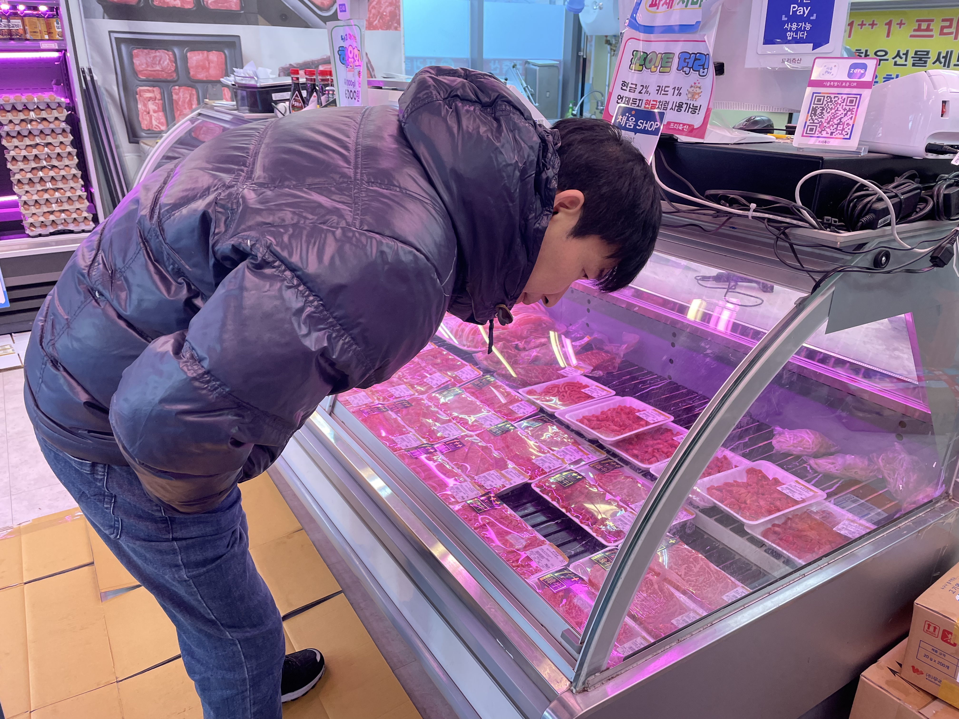 -어떤 고기를 나눠 먹으면 좋을지 고민하고 계시는 정선생님-