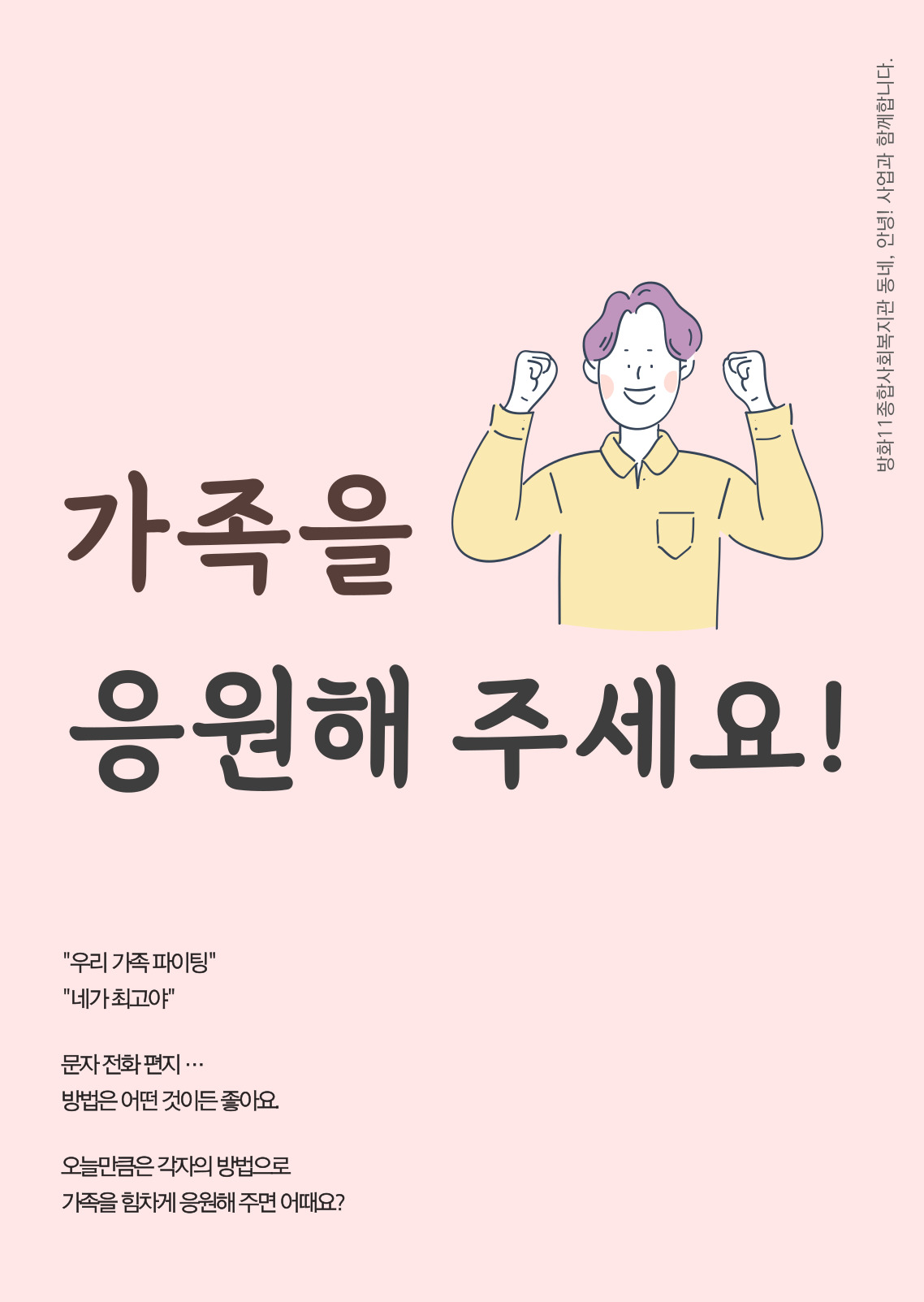 '가족을 응원해주세요!', '보고싶다 친구야'입니다.