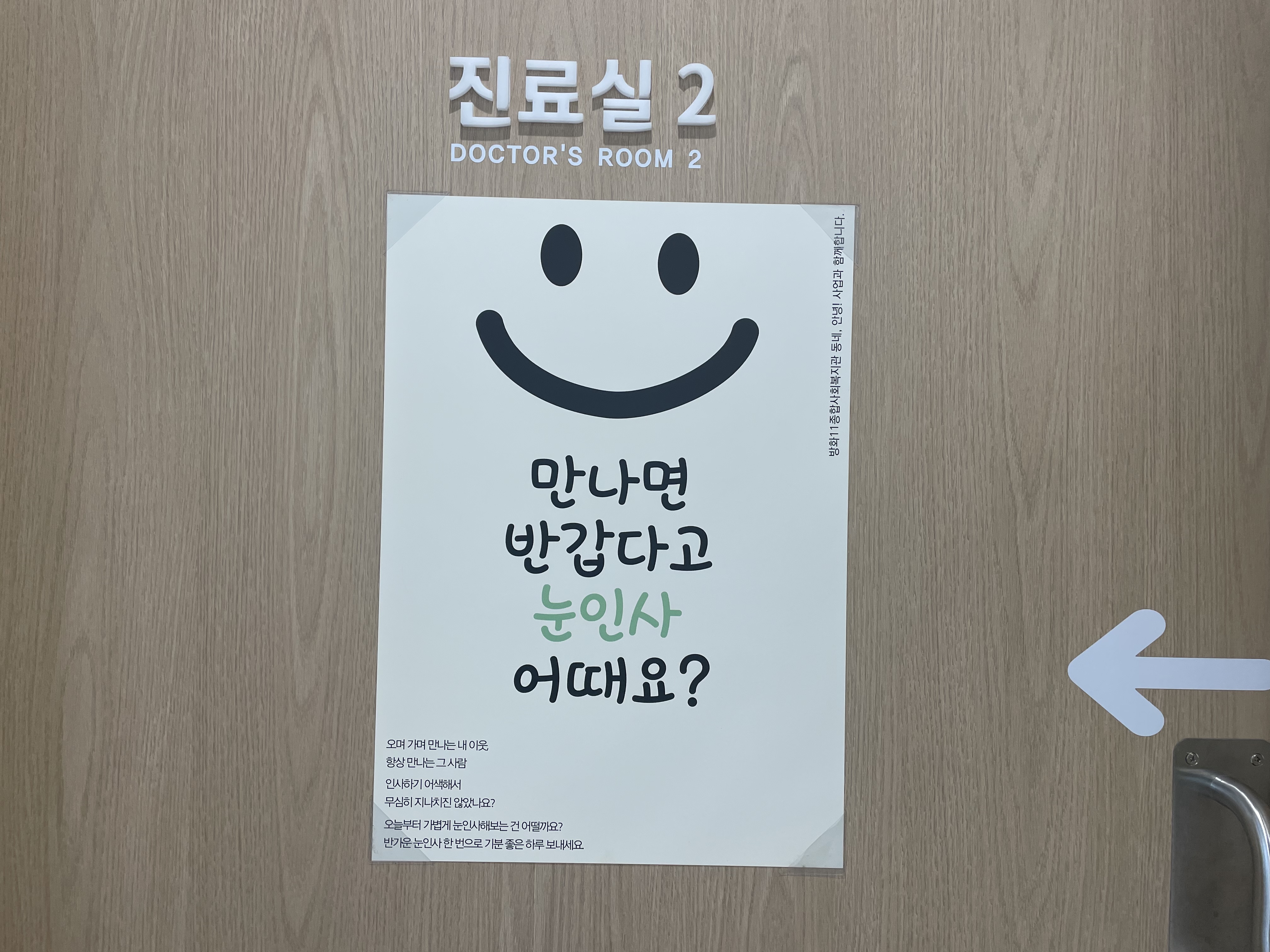 포스터를 함께 보며 눈인사 캠페인에 대해 짧은 이야기를 나누는 시간도 가졌습니다.