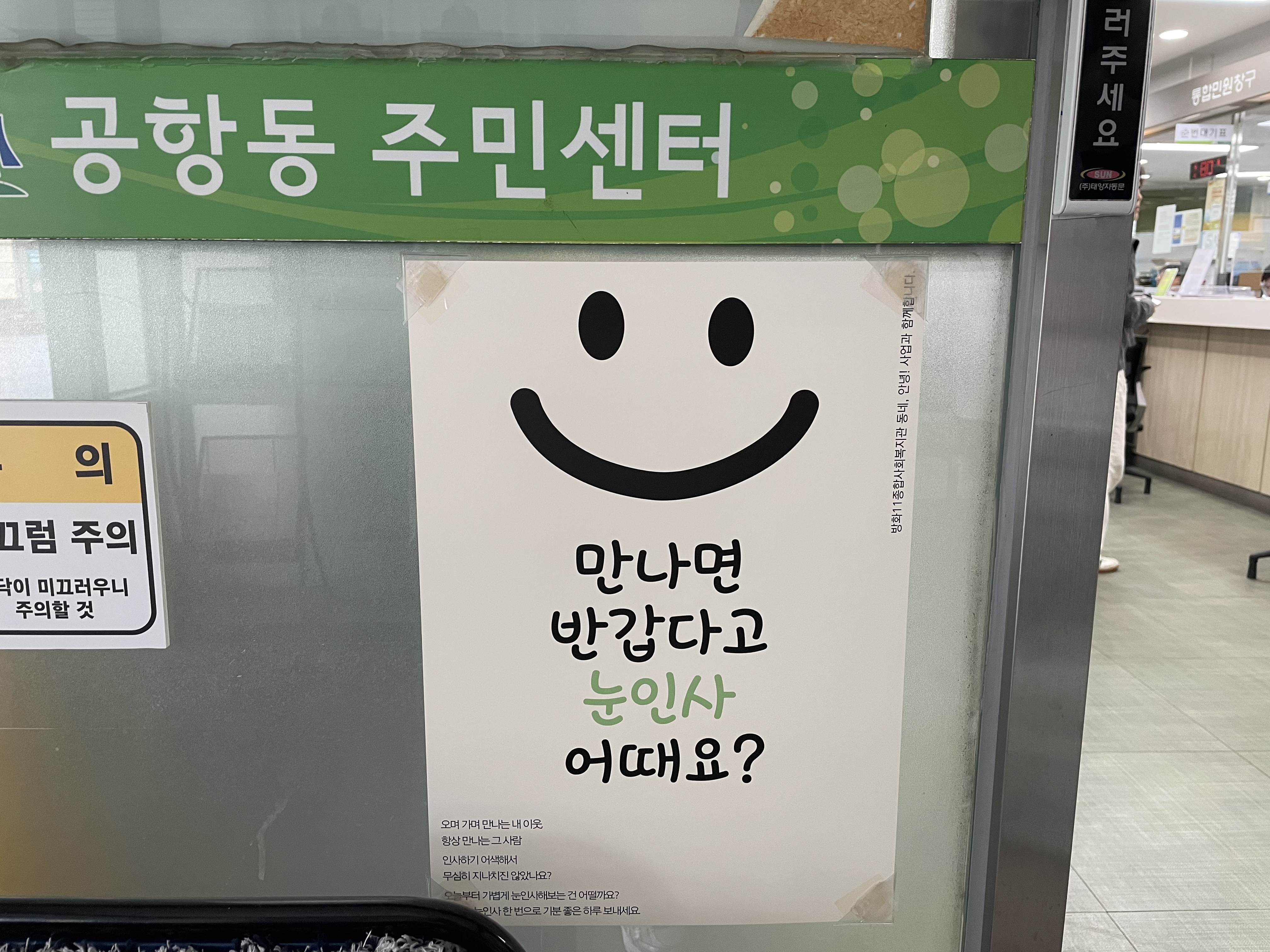 따뜻한 마음을 담은 상가인사 포스터를 들고 공항동으로 나갔습니다.