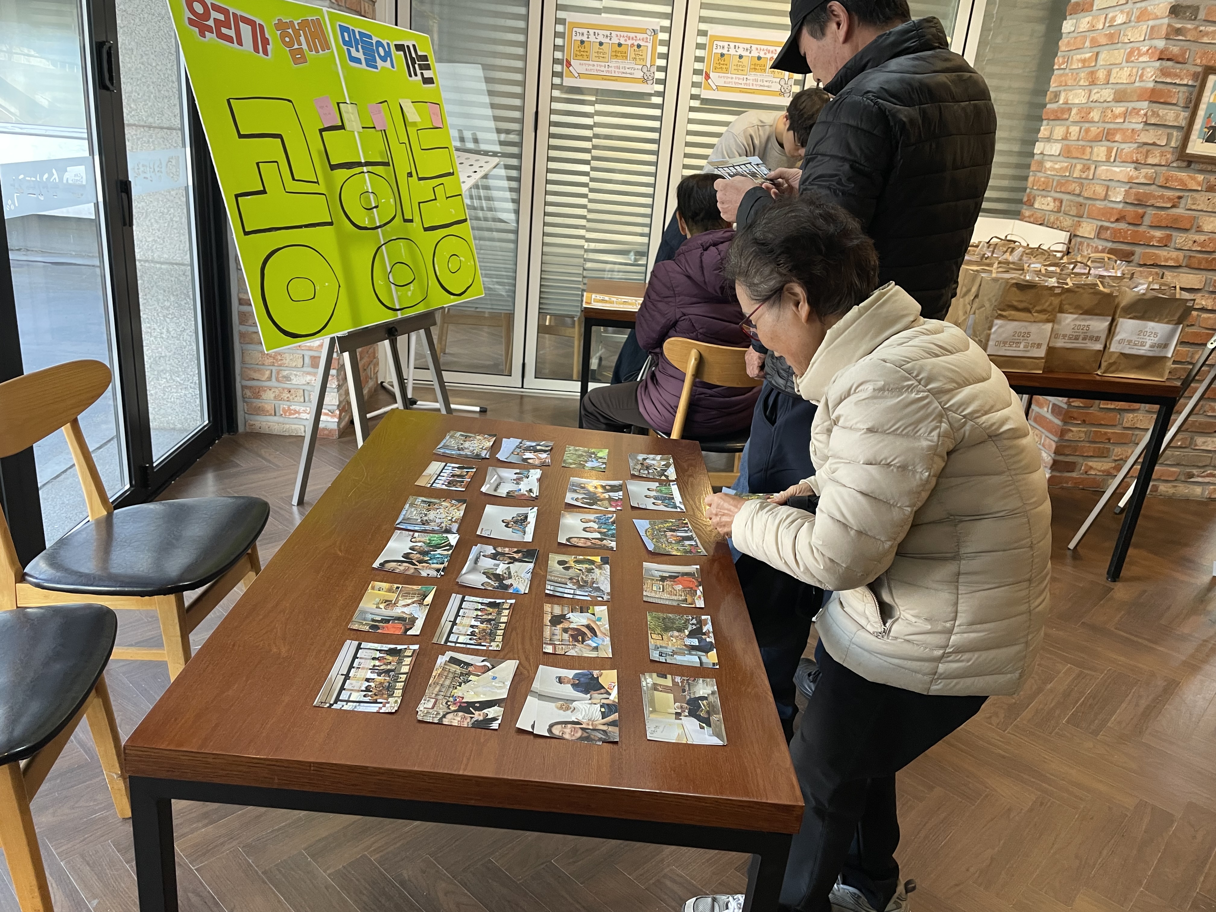 이웃모임 나들이 중 작년 이야기가 나왔습니다. “작년에도 이웃모임을 하셨는데 어떤 추억이 있으셨나요?”라고 여쭸을 때, 주민분께서는 “기억이 잘 나지 않아요.”라고 말씀하셨습니다. 사진을 많이 찍지 않았냐고 여쭙자, “찍었던 것 같은데 그 사진을 받지는 못했어요.”라고 답하셨습니다. 이 대화에서 주민분들께 추억을 전달하는 것이 중요하다고 느꼈습니다. 이에 공유회 때 꼭 사진을 전달드려야겠다고 생각했습니다. 이웃모임을 진행하며 사진을 핸드폰으로 보내드리기도 하고, 핸드폰 사용이 어려운 주민분들을 위해 사진을 인화해 나누어 드리면 좋겠다고 판단했습니다. 특히 인화된 사진은 휴대전화 속 사진과는 다른 의미로 오래 남을 수 있을 것이라 생각했습니다.