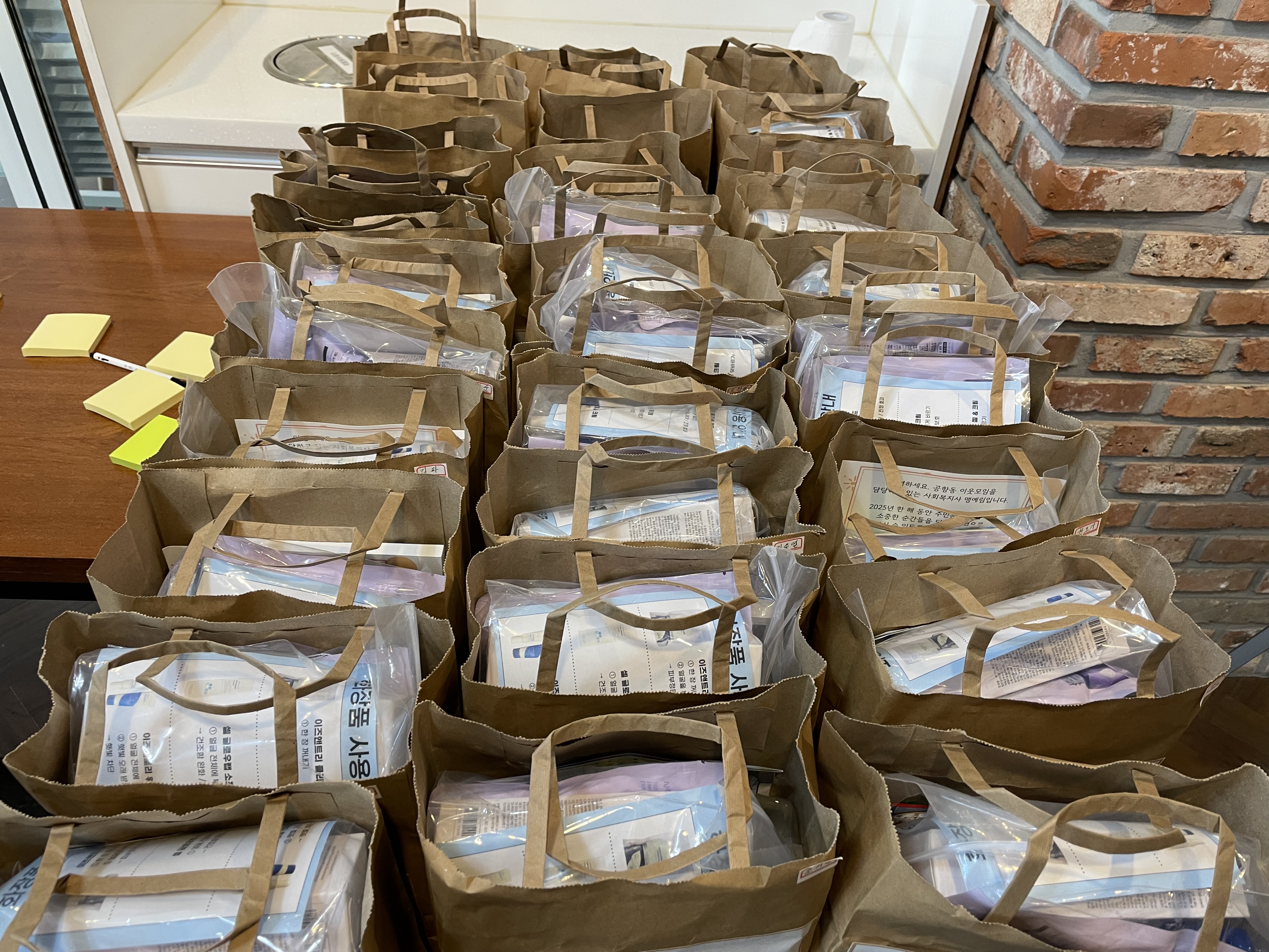 주민분들이 공유회를 마치고 돌아가실 때 가져가실 수 있도록 꾸러미도 준비했습니다. 모임 사진이 담긴 액자와 제 마음을 담은 편지, 소소한 선물, 그리고 세탁모임의 재능 나눔으로 만든 천연 만능세제를 함께 담았습니다. 주민분들을 맞이할 준비를 마쳤습니다.