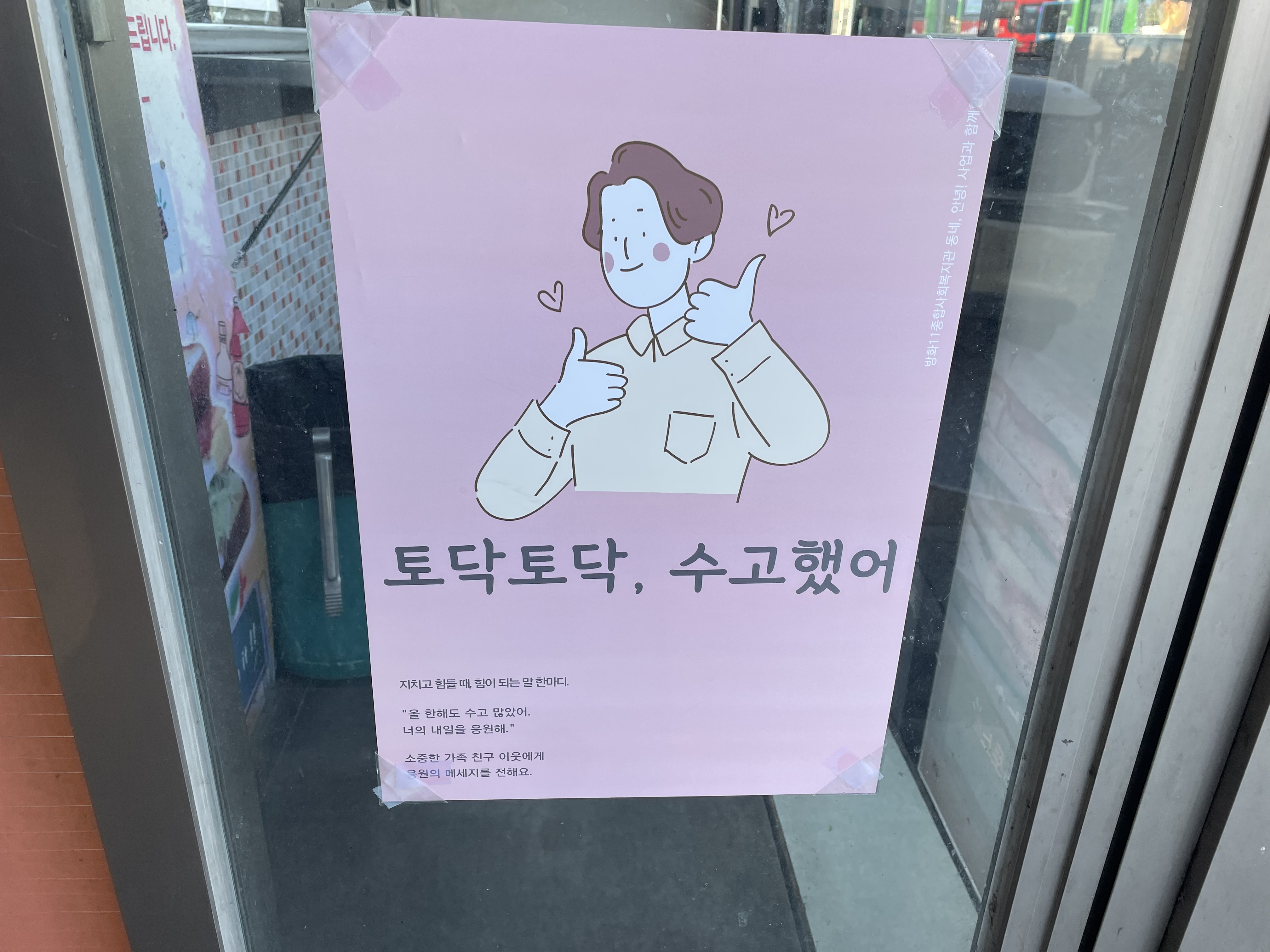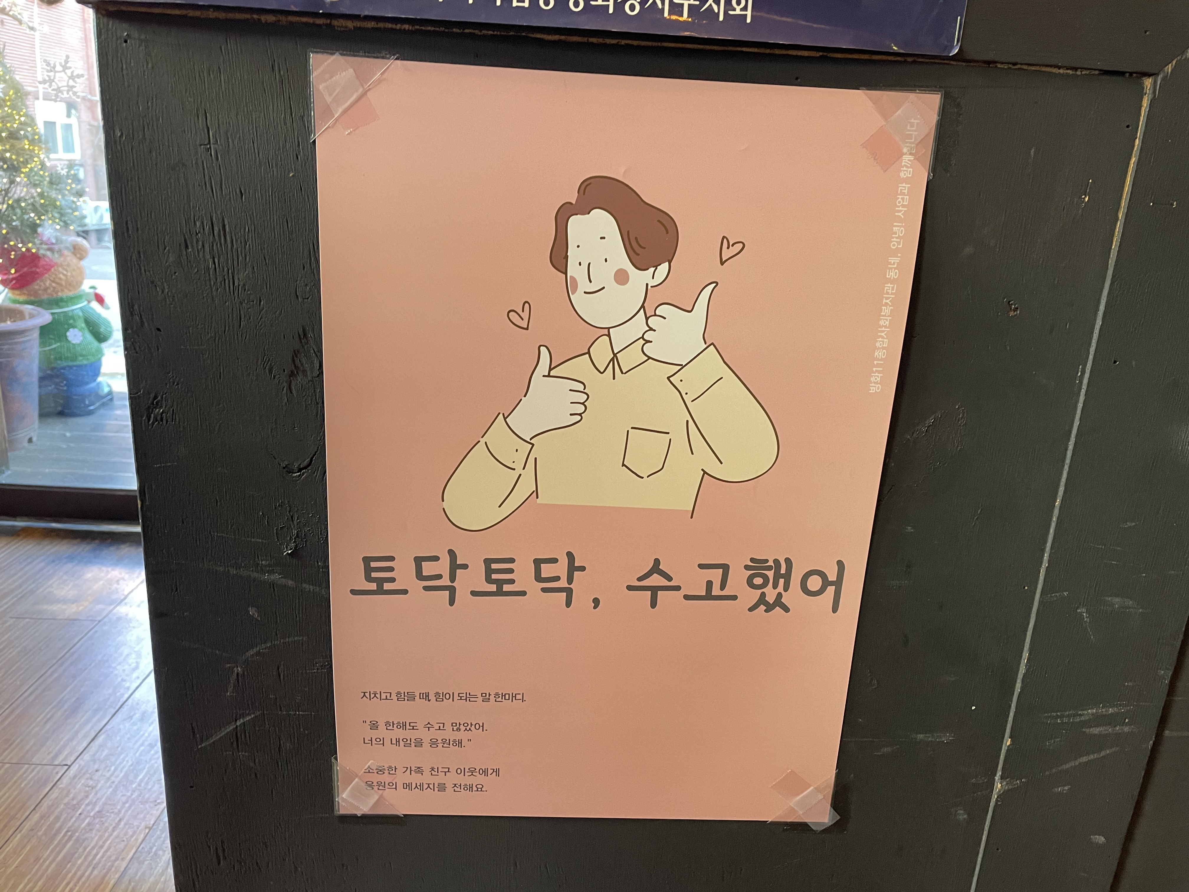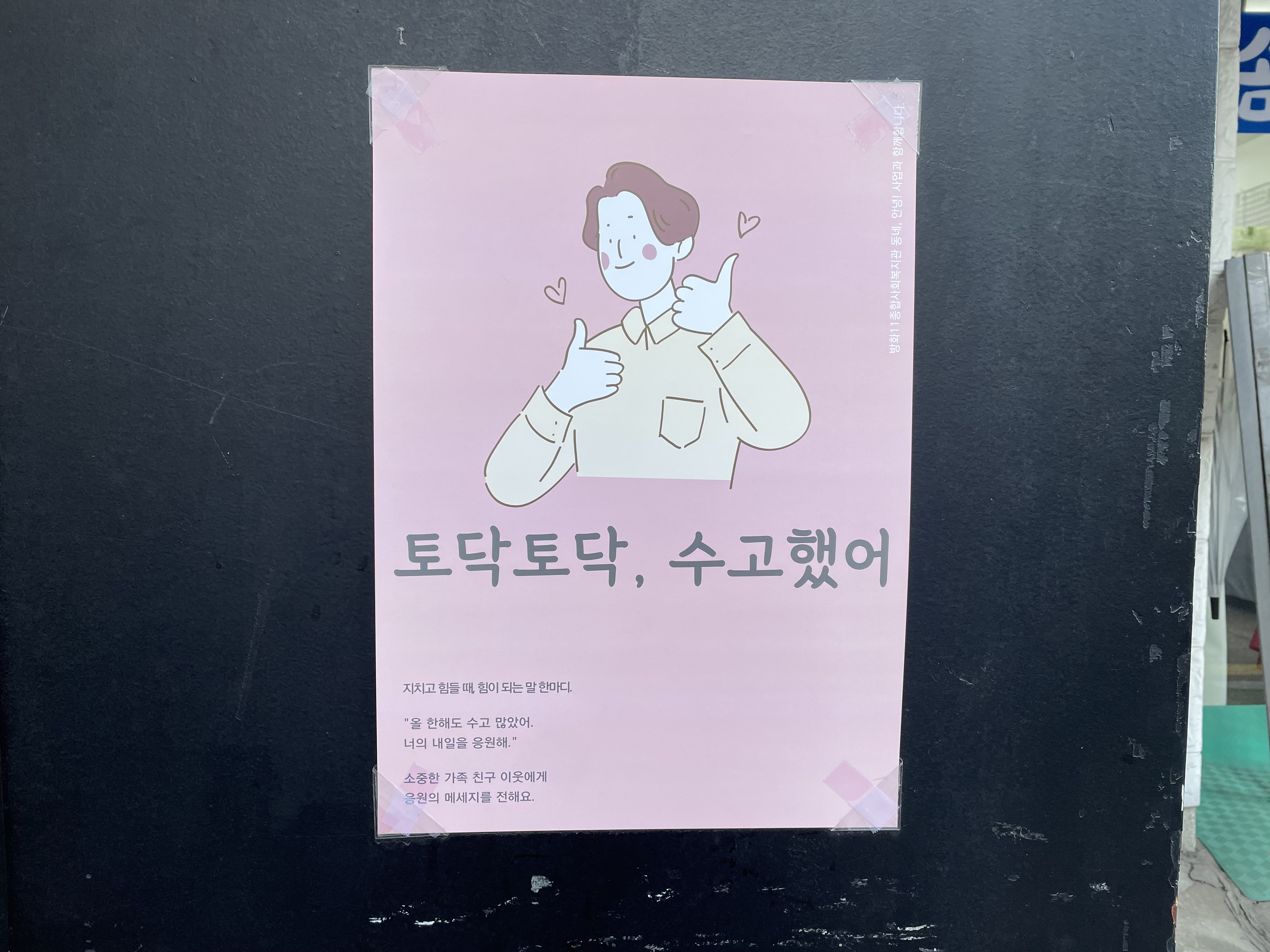 이전에 전달드린 나무 팻말도 상가 사장님들께서 눈에 잘 띄게 배치해 주셔서 감사했습니다. 나무 팻말이 사장님들께 힘을 전해줄 수 있으면 좋겠습니다.
