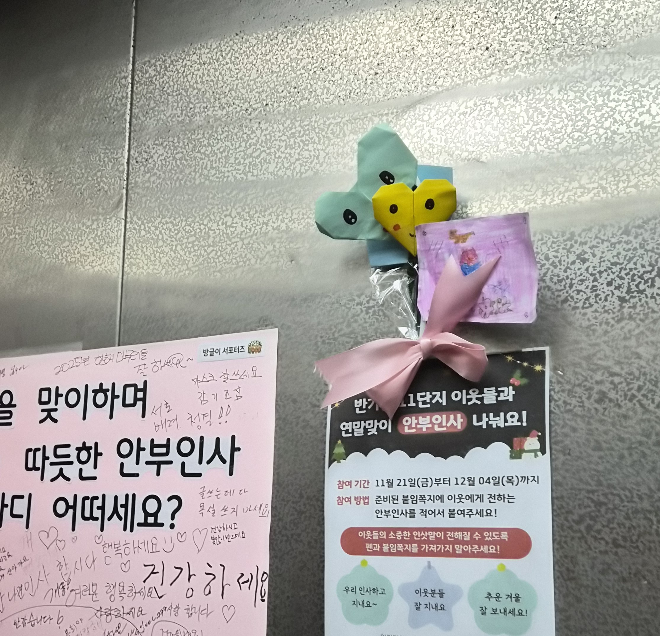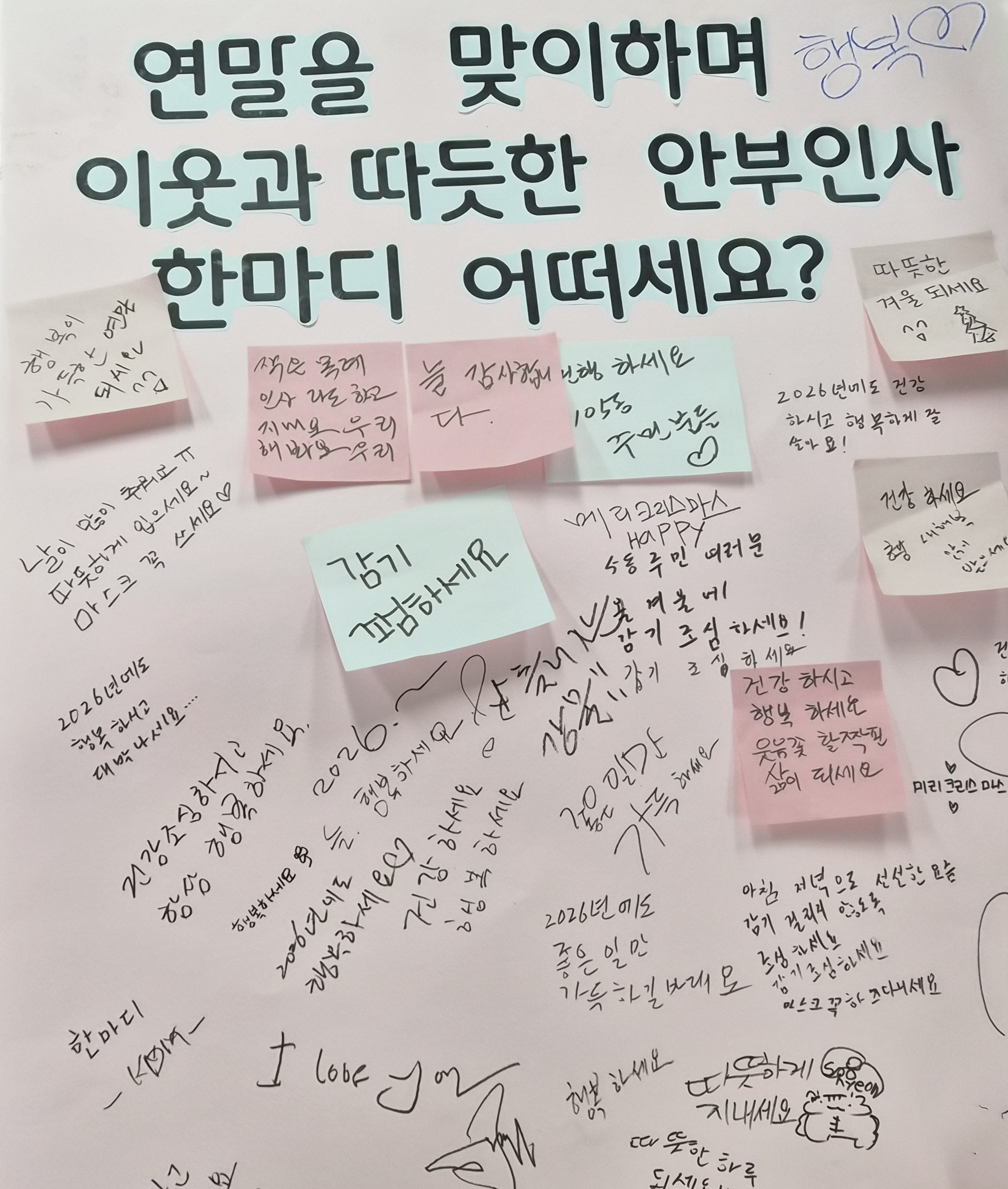 연말 인사, 감사의 말, 이웃을 향한 응원의 메시지가 하나둘씩 붙기 시작하며