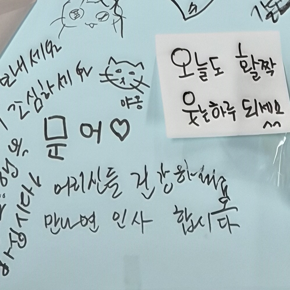 만들 때는 너무 밋밋한가? 좀 더 꾸몄으면 좋겠다라고 생각했는데, 막상 붙여놓고 보니 며칠 지나면 글을 가득 써주니까