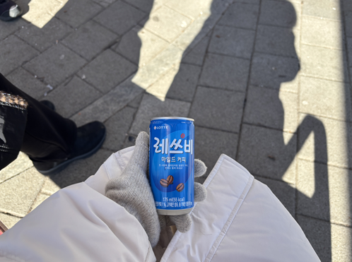 "마침 손 시려웠는데 손도 따뜻하고 맛있는 커피도 마시네요. 덕분이에요~ 고마워요."