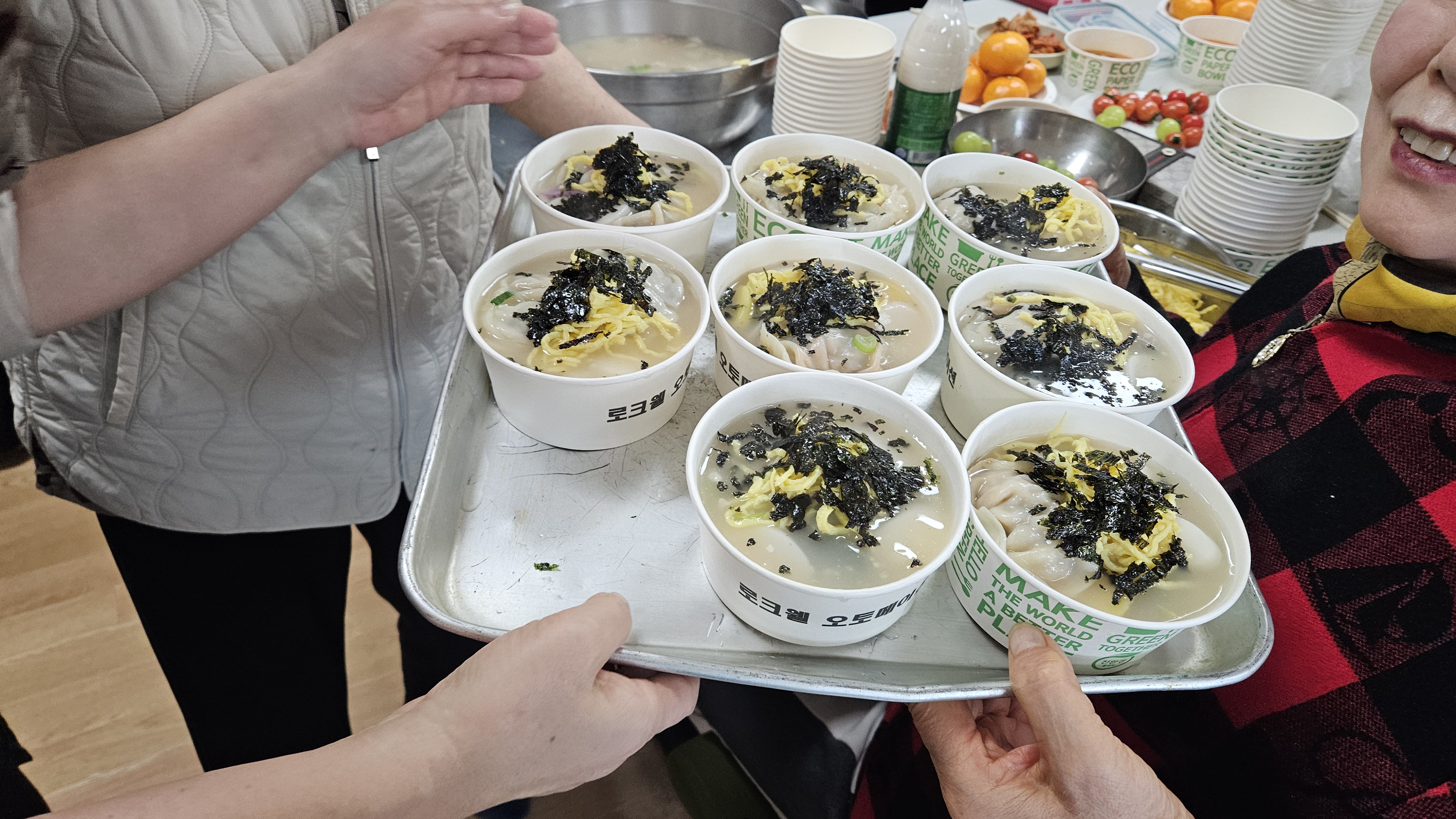 "회장님, 총무님. 저희 작년 이맘때에 같이 만두 빚어서 떡만둣국 끓여 먹었던 것 기억나세요? 올해도 마을분들이랑 같이 잔치하면 명절 분위기 물씬날 것 같은데 어떠세요?"