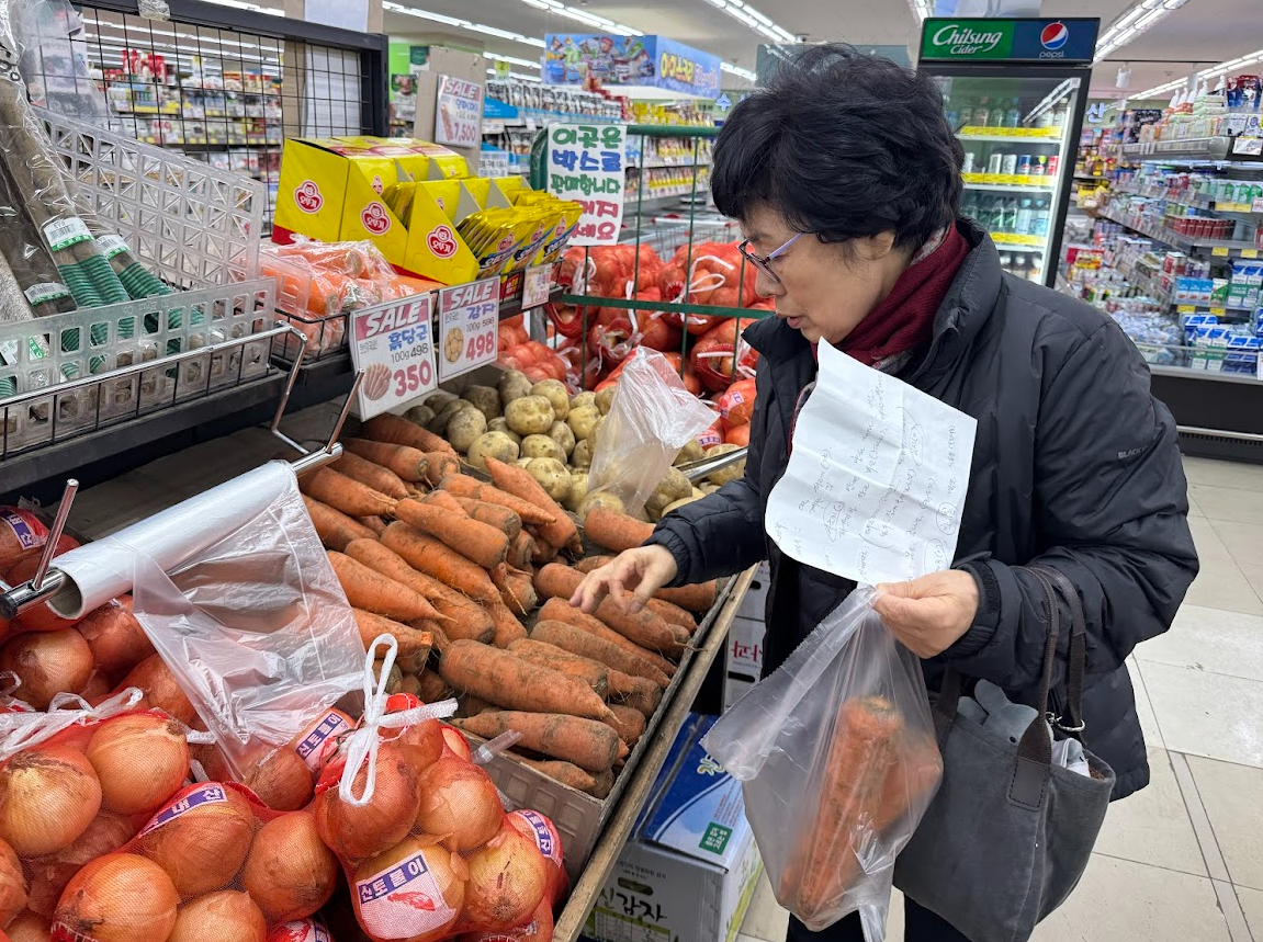통장님께서는 떡국과 부침개, 잡채를 준비하면 명절 분위기가 한층 살아날 것 같다고 제안해 주셨습니다. 통장님과 함께 잔치의 전체적인 방향을 논의하며, 잔치 전날 함께 장을 보기로 했습니다. 잔치 전날입니다. 손혜진 과장님과 함께 통장님을 만났습니다. 통장님께서는 잔치 음식을 만들기 위해 필요한 재료를 미리 종이에 꼼꼼히 적어 오셨습니다. 각 음식을 잘 만들기 위해 어떤 재료를 구매하면 좋을지, 어떤 과일을 고르면 좋을지 세세하게 적힌 종이를 보며 통장님의 마을을 아끼는 마음을 잘 느낄 수 있었습니다.