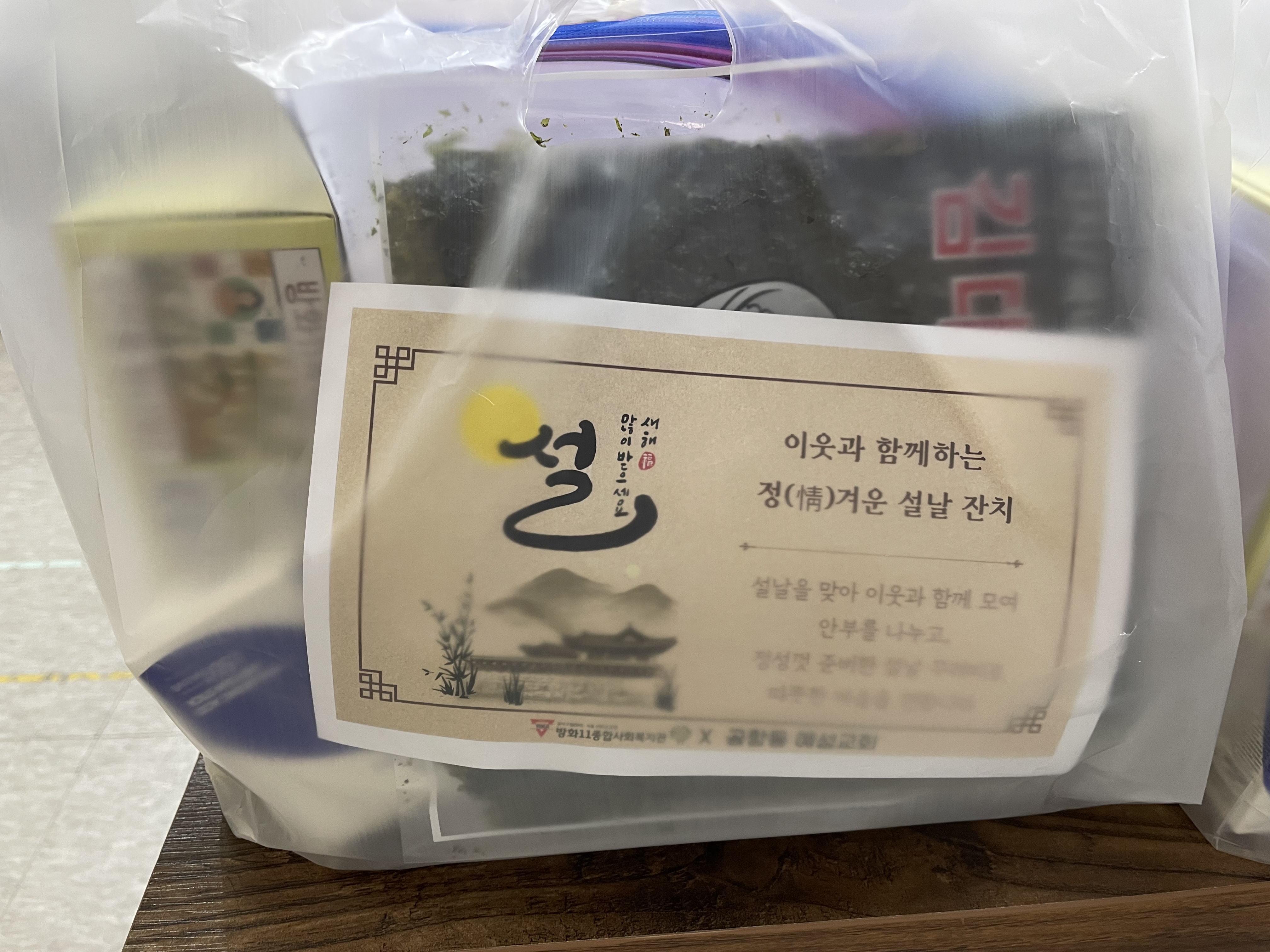 주민들이 모두 귀가하신 후에는 공항동 어벤져스와 함께, 움직임이 불편하신 분들을 위해 잔치 꾸러미를 배달했습니다. 잔치 장소까지 오시기 어려운 분들께 명절 인사를 전하며, 찾아가는 잔치를 진행하였습니다.