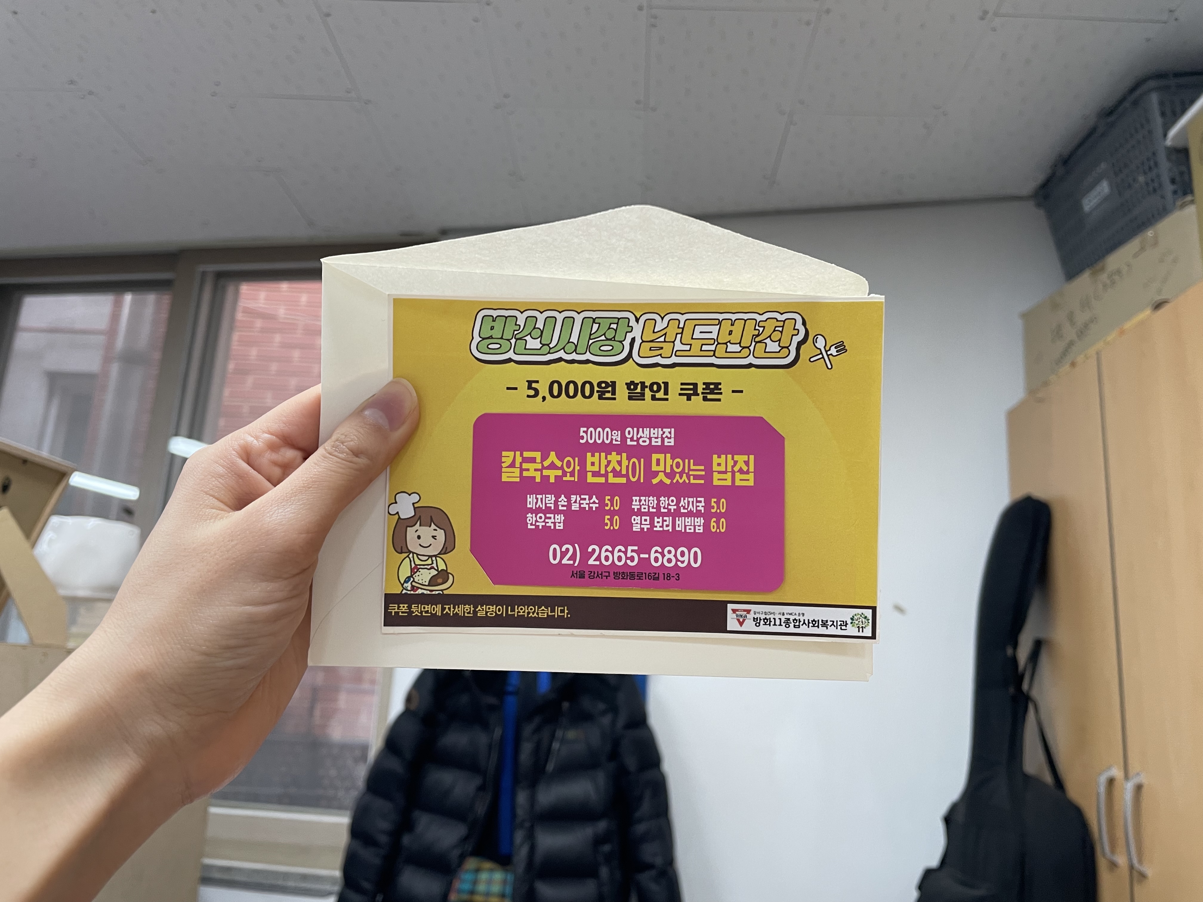 떡만둣국이 만들어지는 동안, 주민분들과 함께 간단한 레크리에이션 시간을 가졌습니다. 남도반찬에서 제공해주신 5,000원 할인 쿠폰을 예쁘게 꾸며, 레크리에이션 상품으로 전달드렸습니다. 작은 선행이 누군가에게 웃음을 주고, 그 기쁨이 이어지는 모습을 직접 느낄 수 있었습니다.