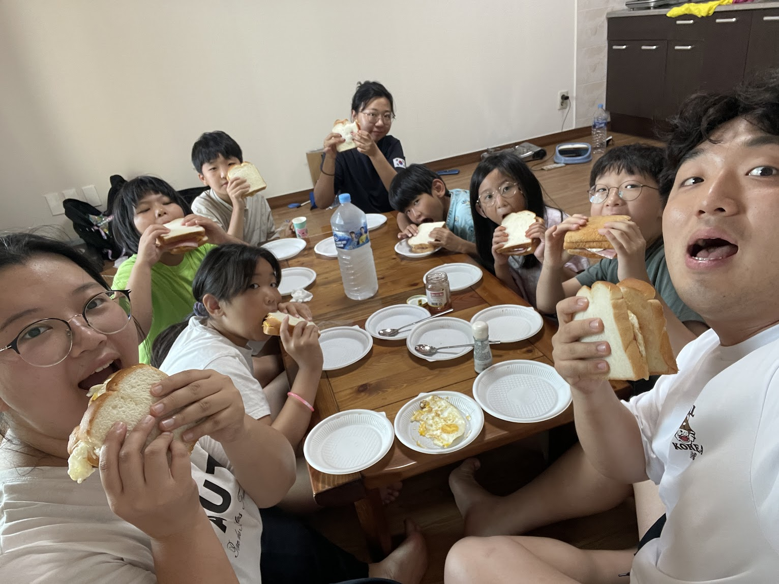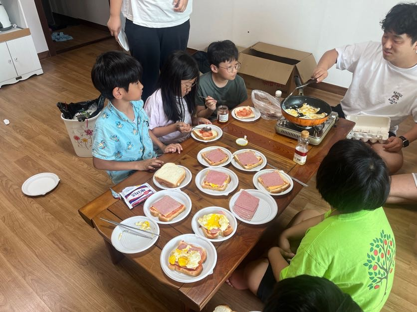 다음 날 아침 아동들은 스스로 이불을 정리하고 아침 식사도 스스로 만들어 먹었습니다.