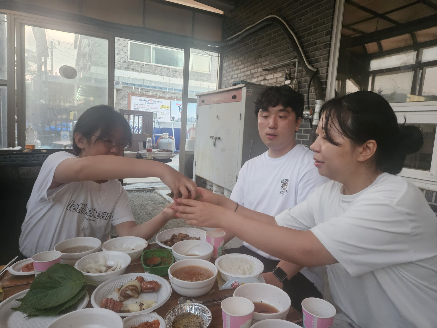 저녁에는 바비큐 식사를 준비하며 상추를 씻고 냉면을 만드는 등 역할을 나누어 서로 도왔습니다.