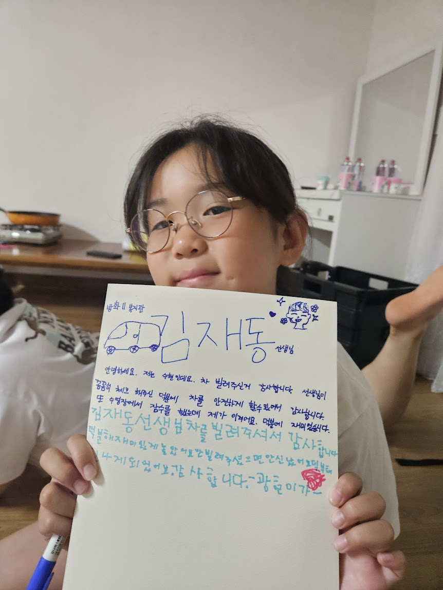 이번 방우리 여행을 도와준 여러 선생님들께 감사의 마음을 담아 편지를 썼습니다.