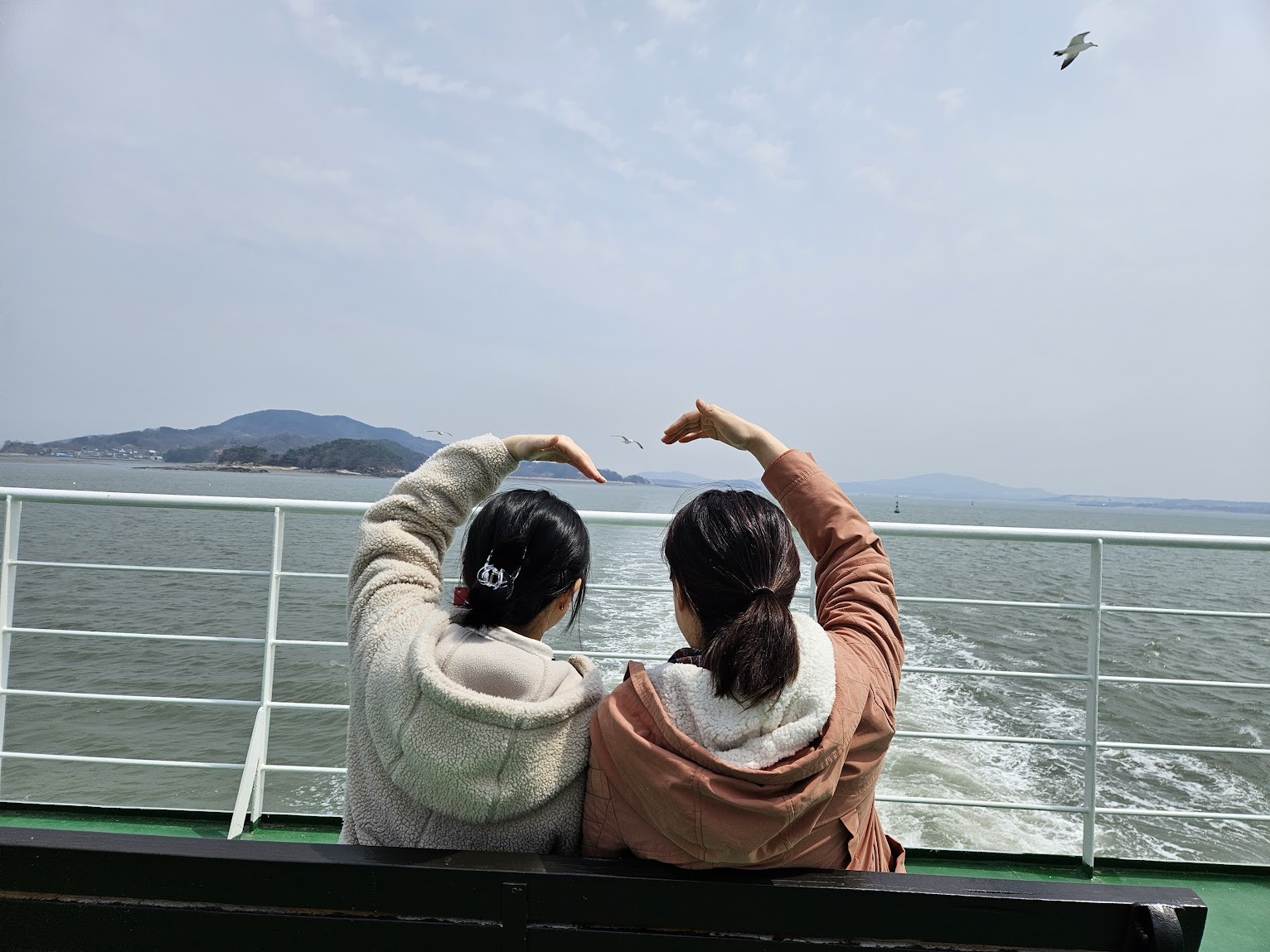"배 타는게 가장 기억에 남아요.갈매기 밥을 주는 건 처음이었는데, 생각보다 무섭고 재미있었어요. 트래킹을 끝까지 다 못해서 아쉬워요. 다음에는 조금 쉬운 코스로 도전해보고 싶어요"(은지)