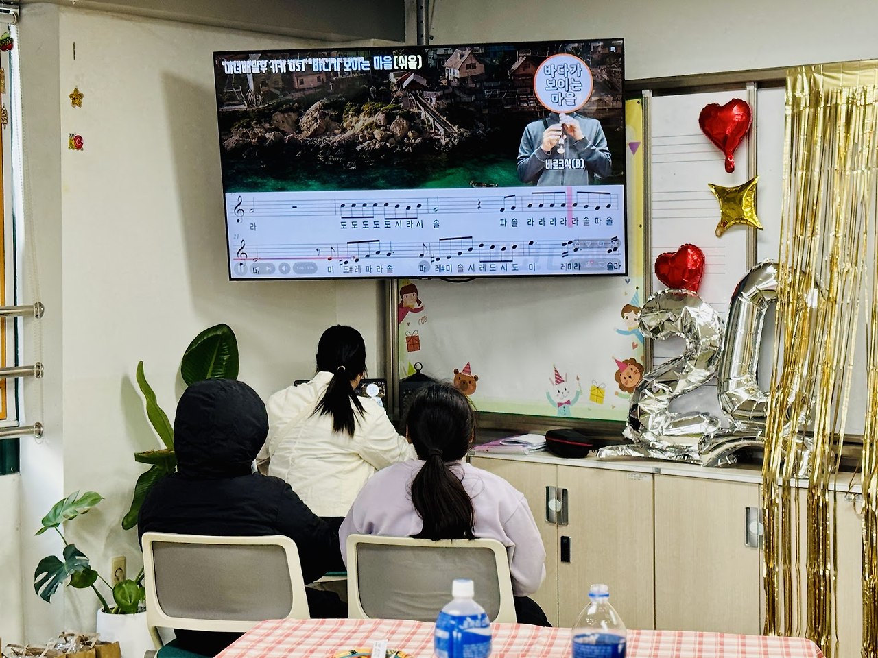 주문한 음식도 세팅하고, 축하공연 준비와 발표연습도 했습니다.