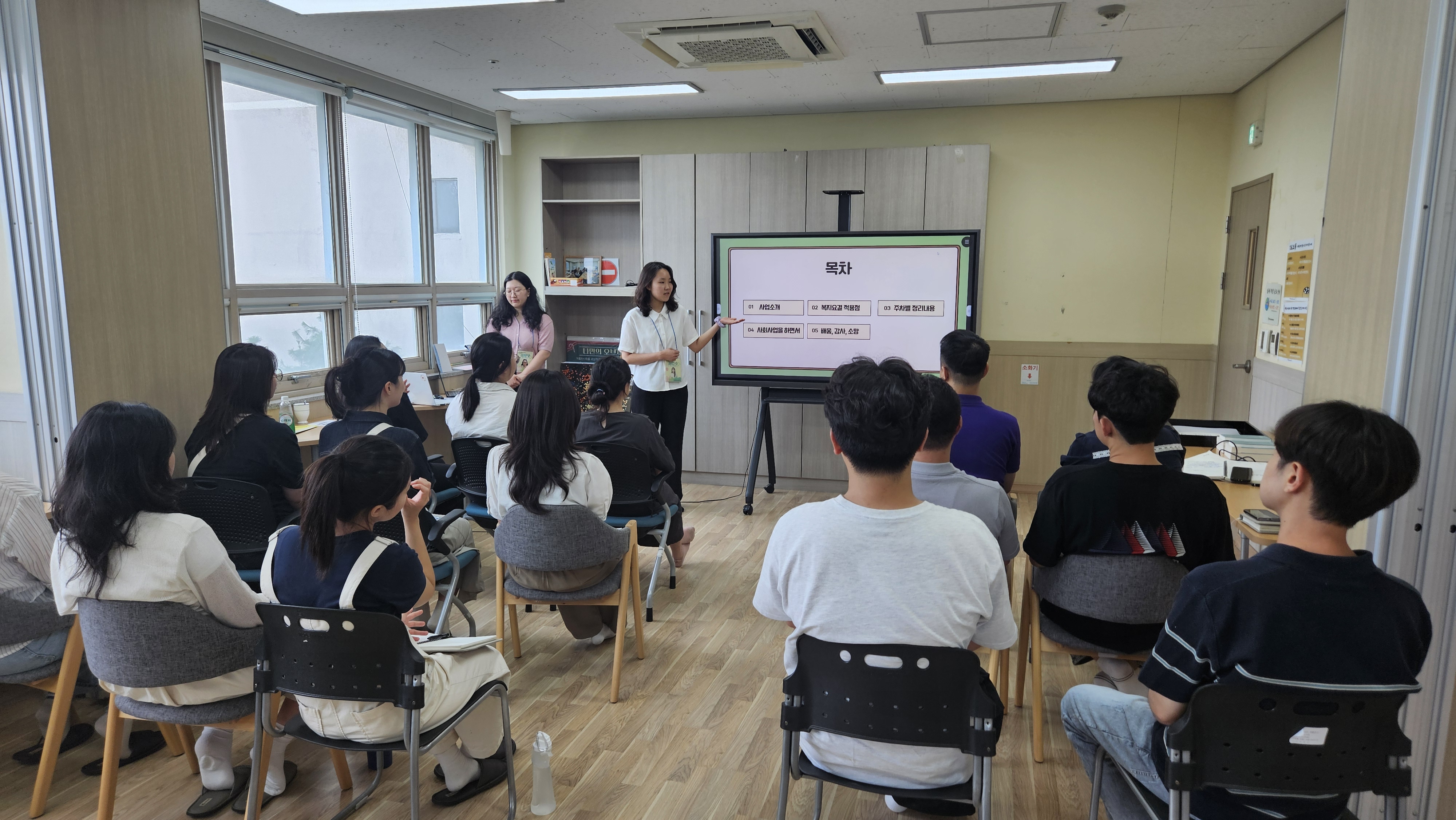 이 과정들은 복지관 전체 직원들 앞에서 발표했습니다.