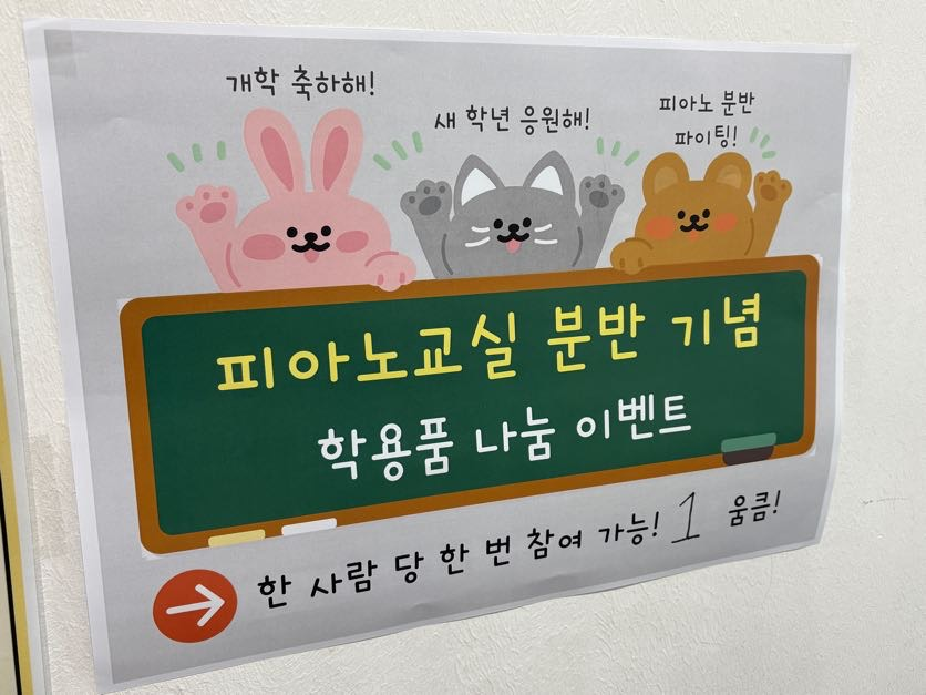 피아노교실 분반과 아이들의 힘찬 새학기를 응원하는 마음으로 분반 기념 이벤트를 진행했습니다.