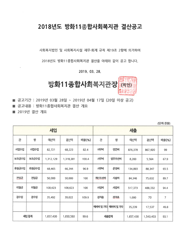 2018년 결산 보고