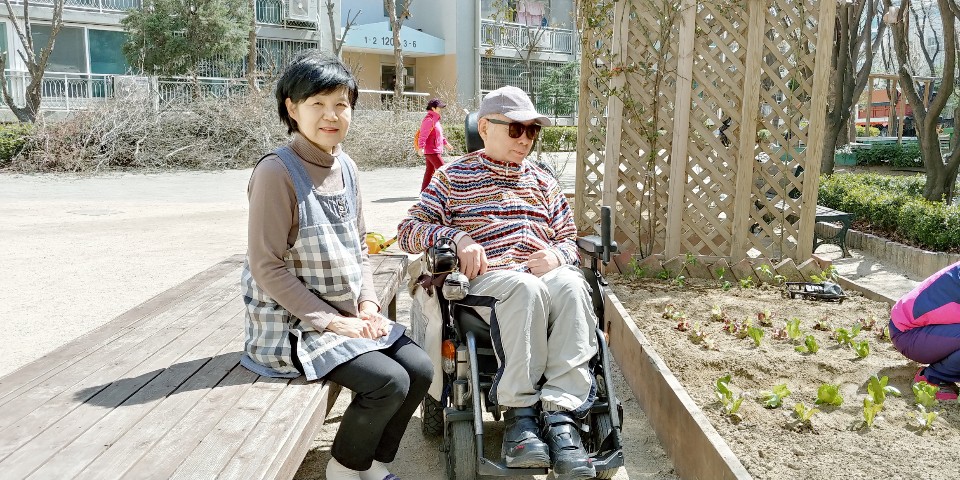 복지관 앞마당에 이런 텃밭과 마루가 있어서 참 좋았어요.