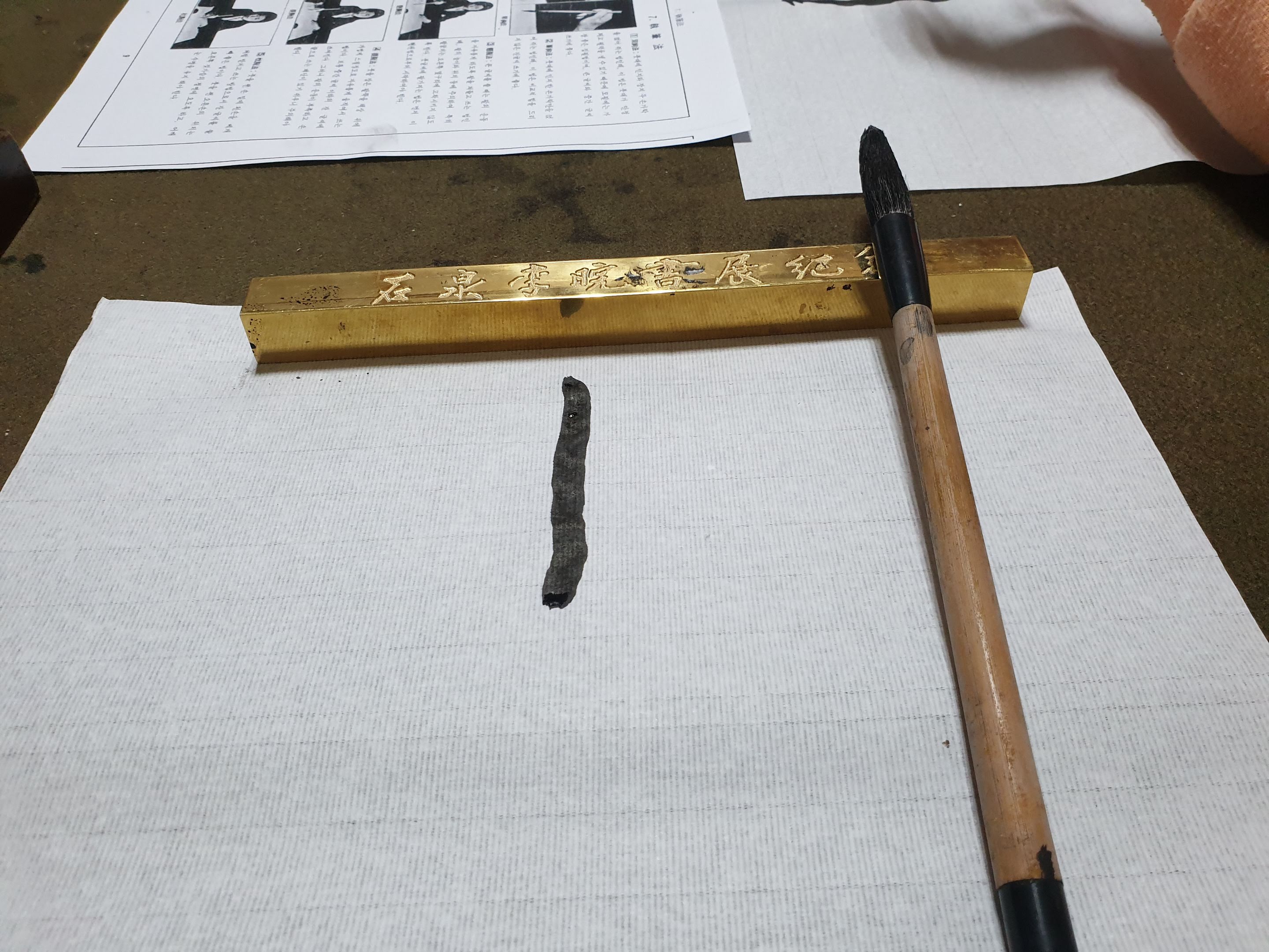 붓을 쓰고 화선지에 먹이 묻지 않게