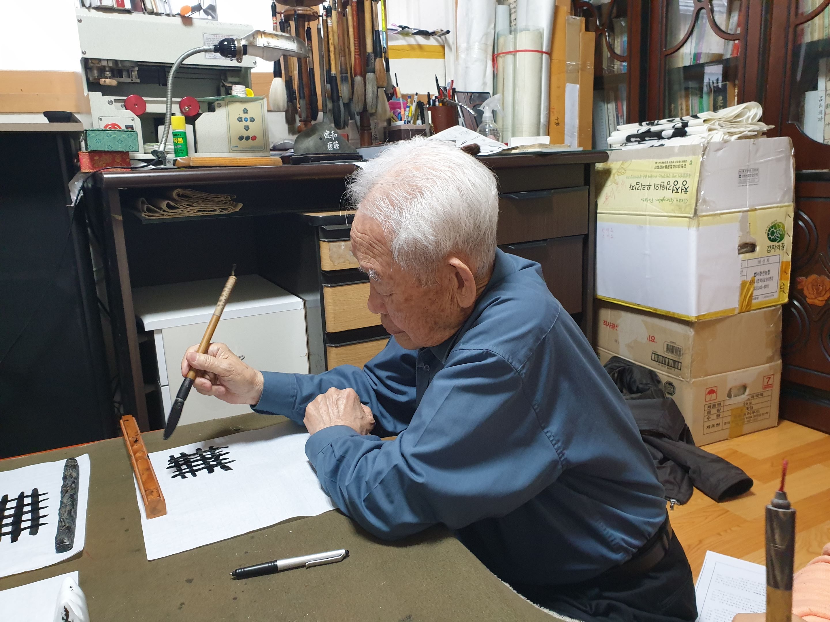 "한 명씩 붓 받아요. 좋은 붓은 아닌데