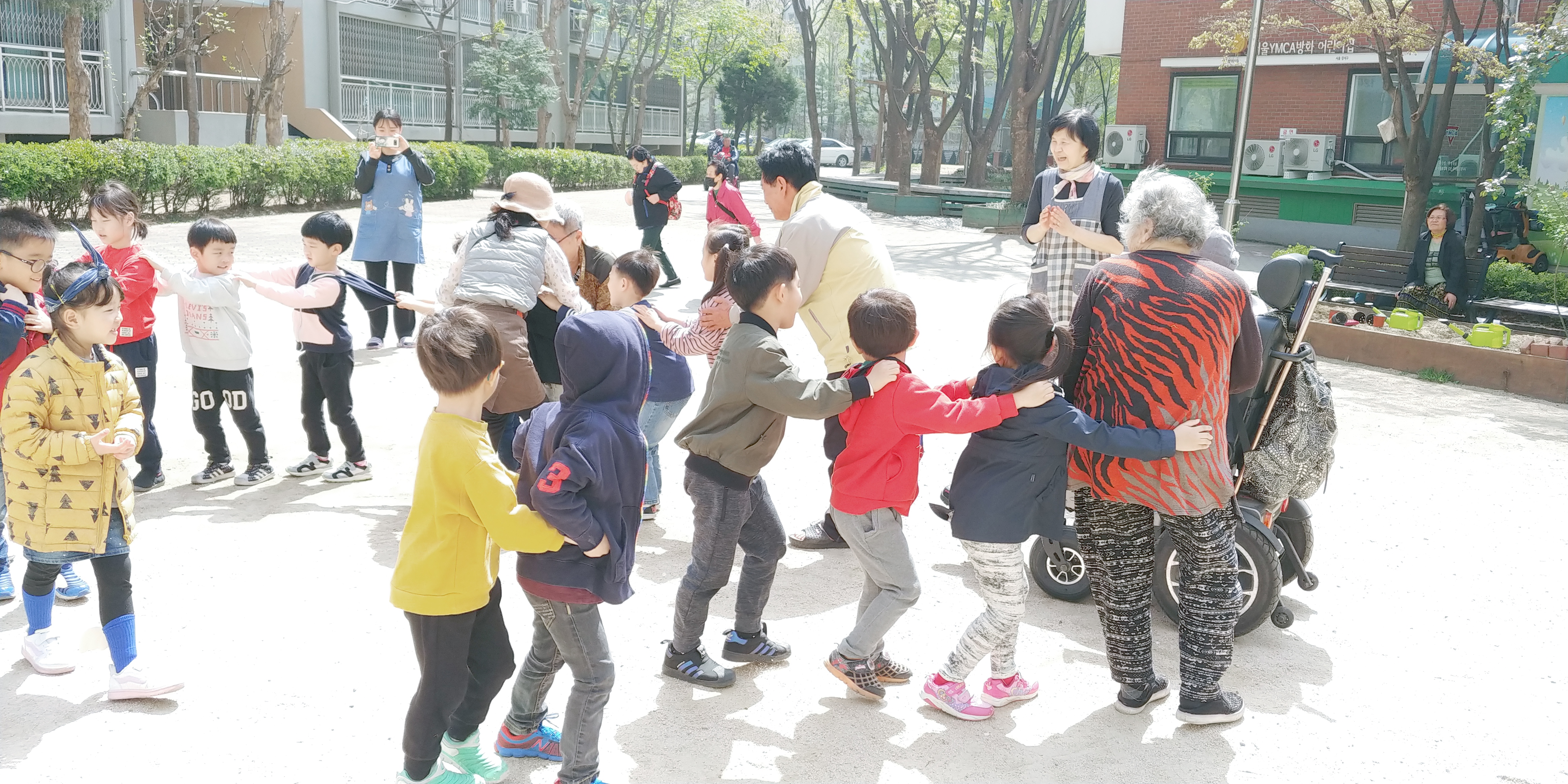 할머니, 할아버지와 함께 숲대문놀이 하니깐