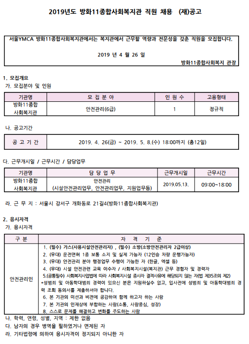 | 안전관리 채용 재공고 (0) | 2019.04.30 |