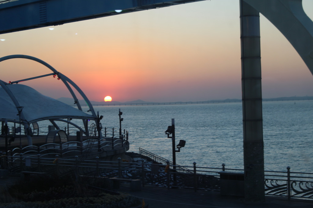 어르신들과 함께한 나들이에서 본 일몰은 출렁이는 바다 물결을 붉게 물들였습니다.