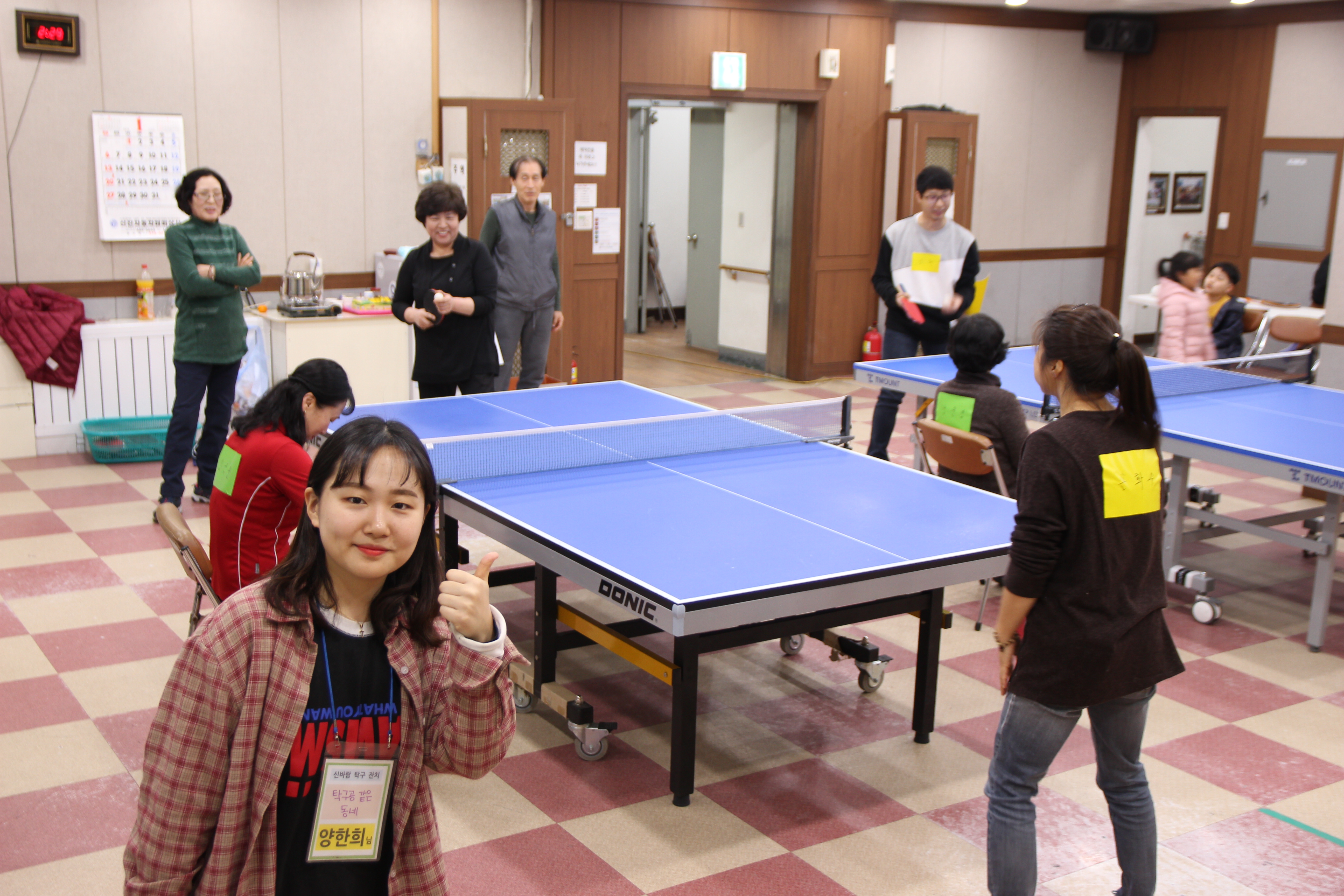 복지관 강당이 오전, 오후, 저녁, 탁구하는 주민들로 들썩들썩했습니다.