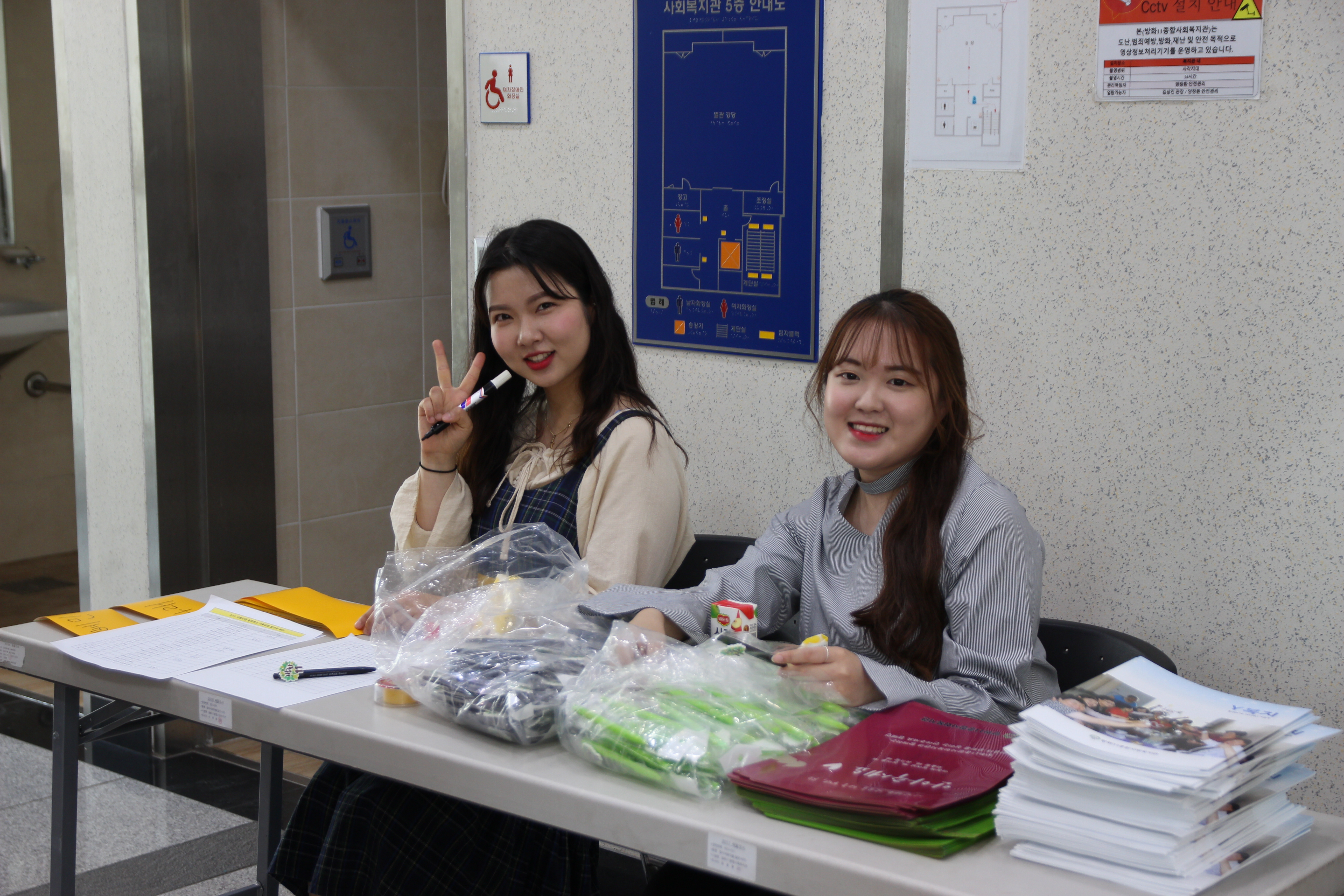 종이현수막 담당, 안내 담당, 간식 담당, 접수 담당, 책 전시 담당 등 필요한 일을 부탁했습니다.