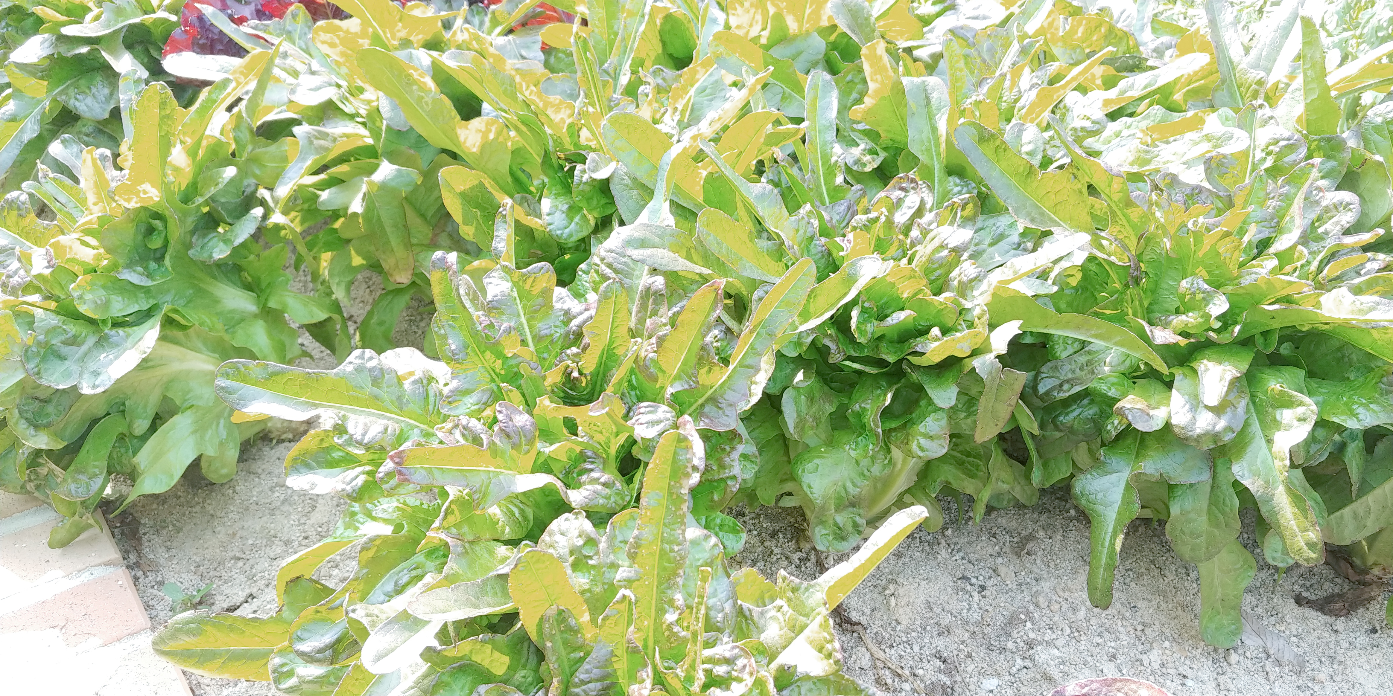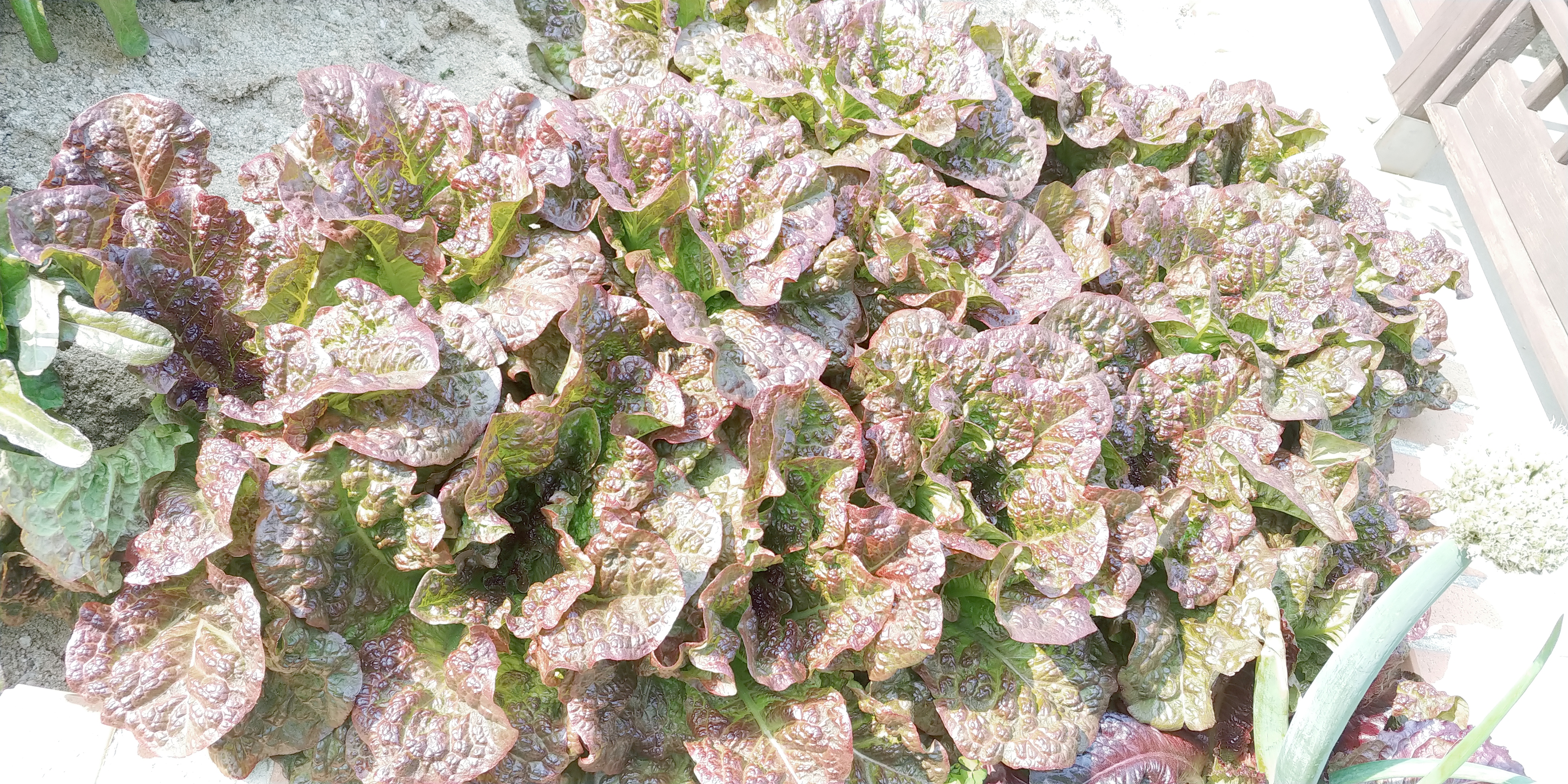 여러종류의 상추며 쑥갓, 돌나물, 도라지, 붉은 감자, 토종대파, 완두콩...