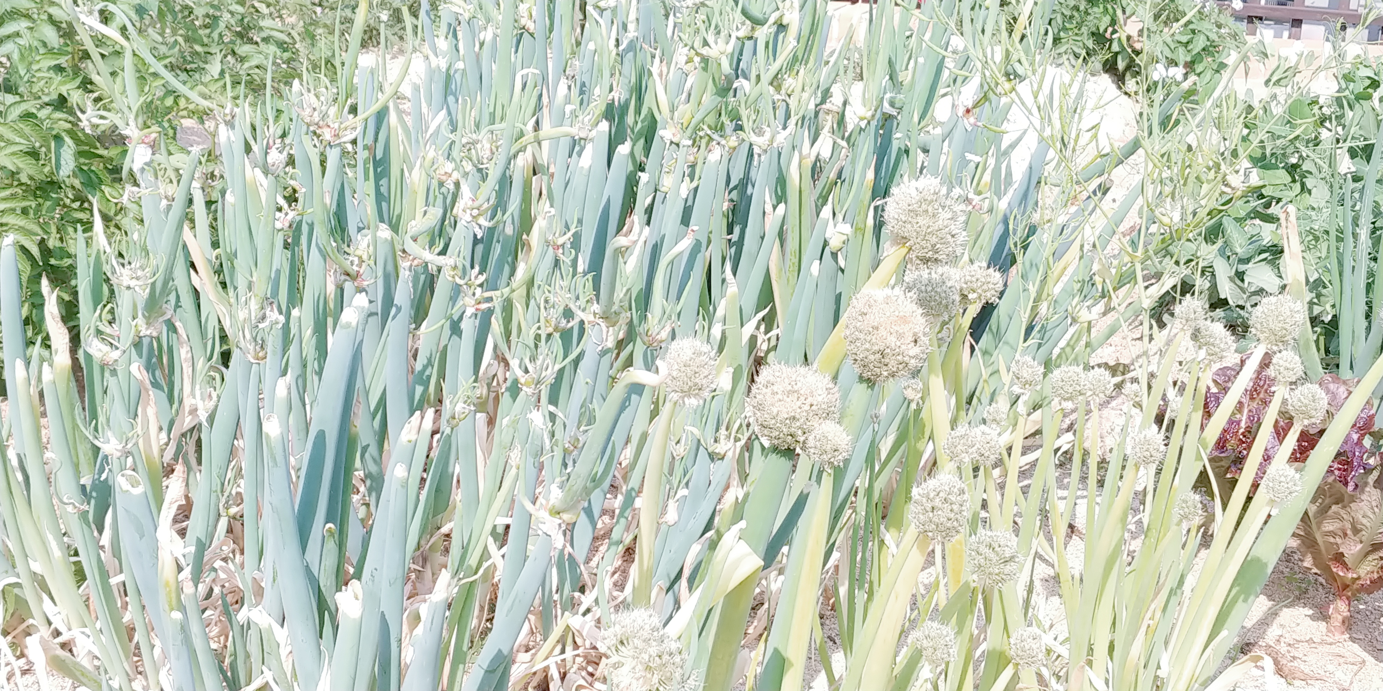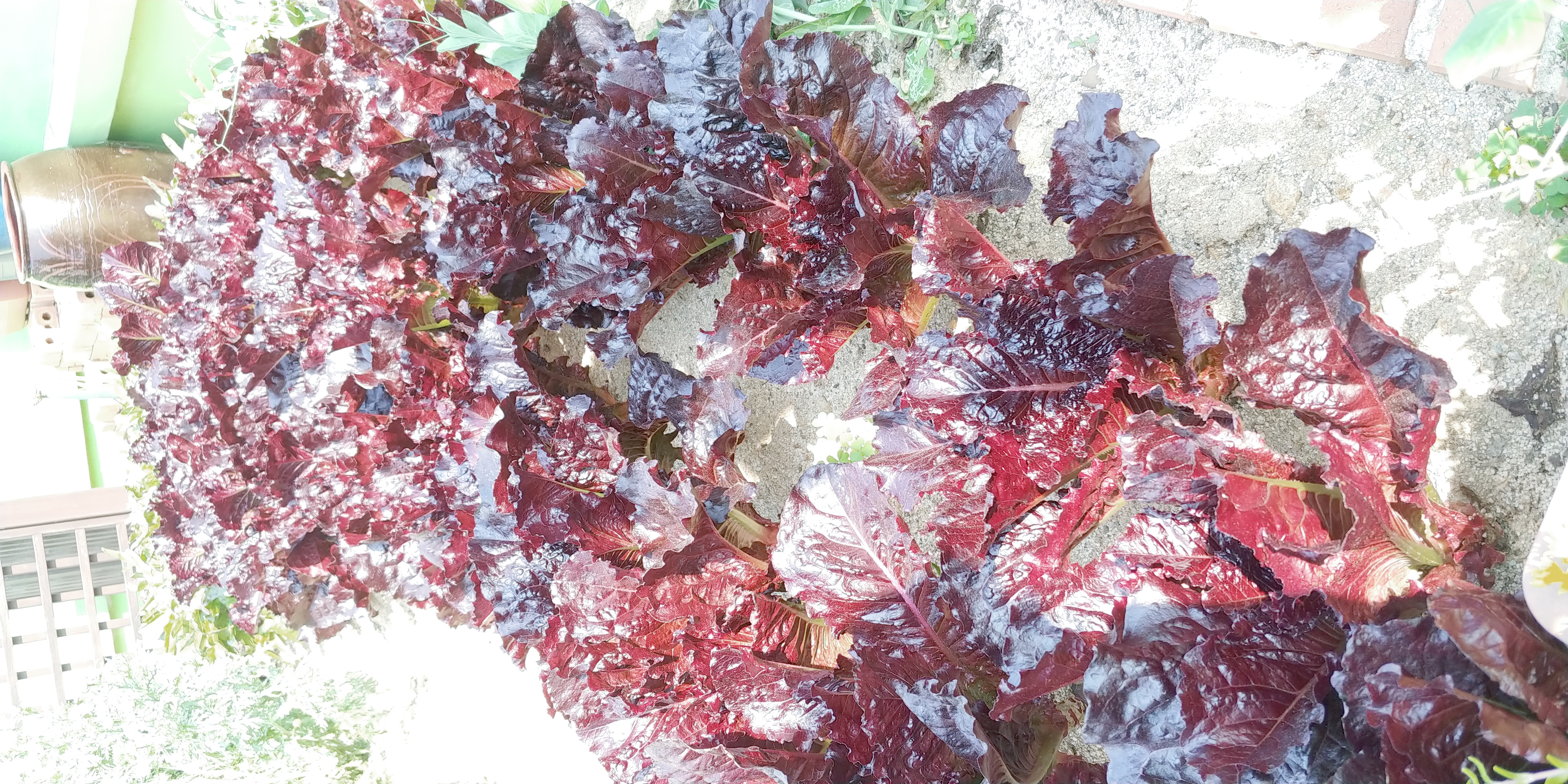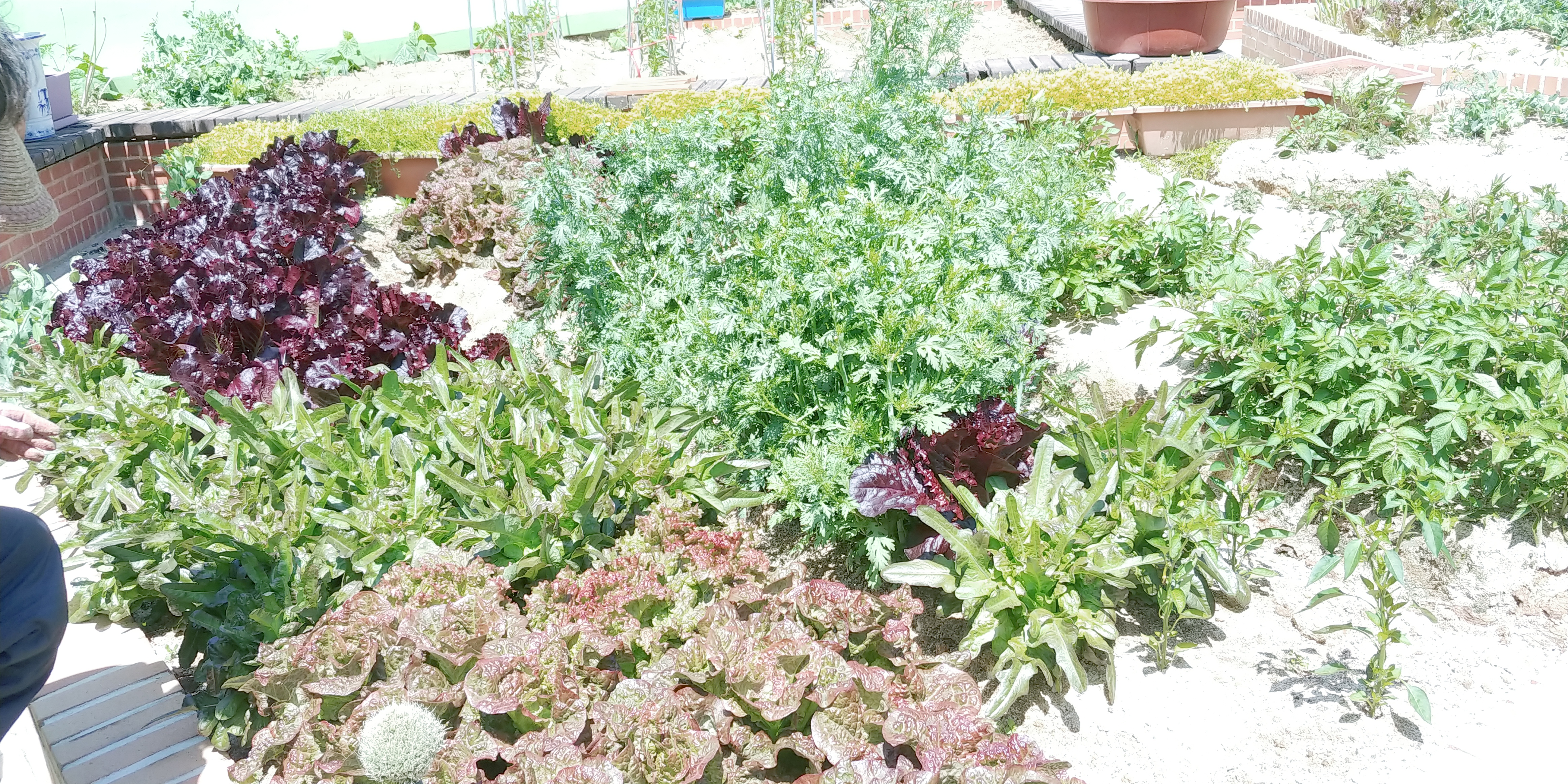 여러종류의 상추며 쑥갓, 돌나물, 도라지, 붉은 감자, 토종대파, 완두콩...