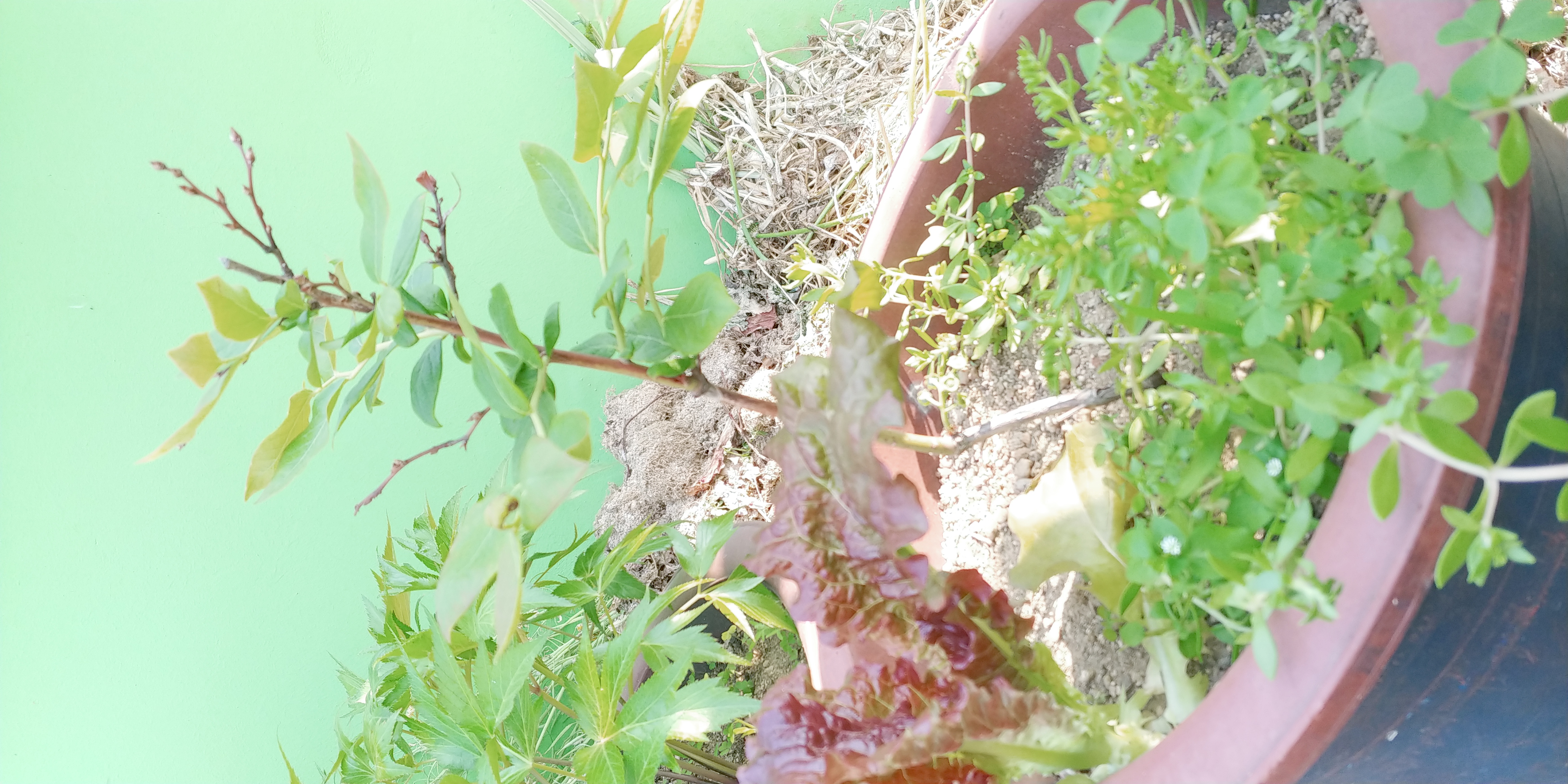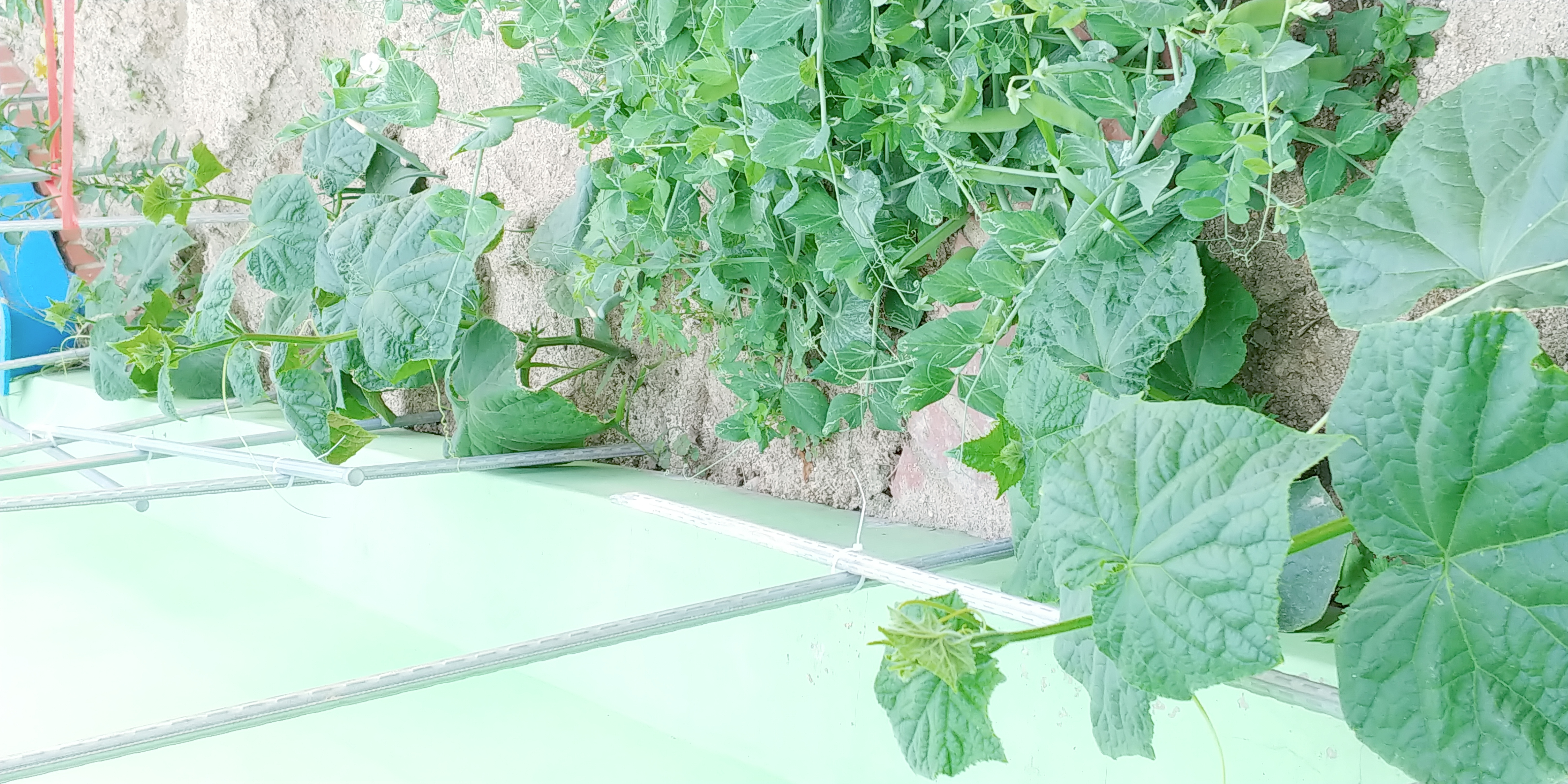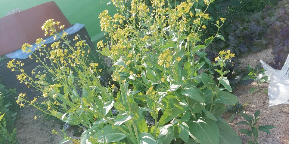 여러종류의 상추며 쑥갓, 돌나물, 도라지, 붉은 감자, 토종대파, 완두콩...