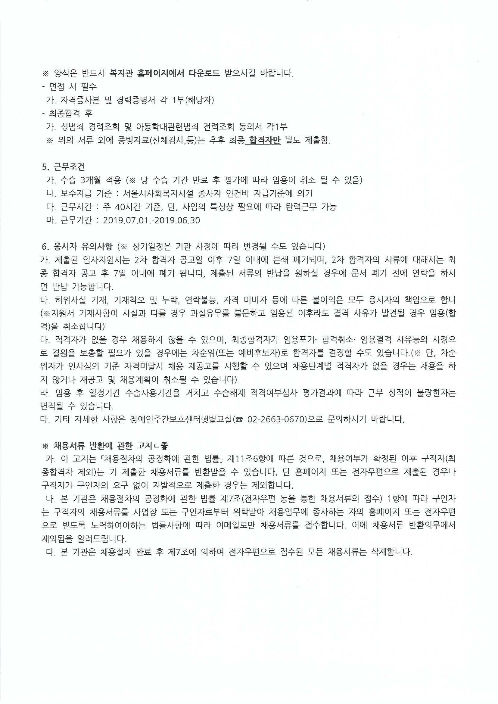 장애인주간보호센터햇볕교실 사회복지사 채용공고