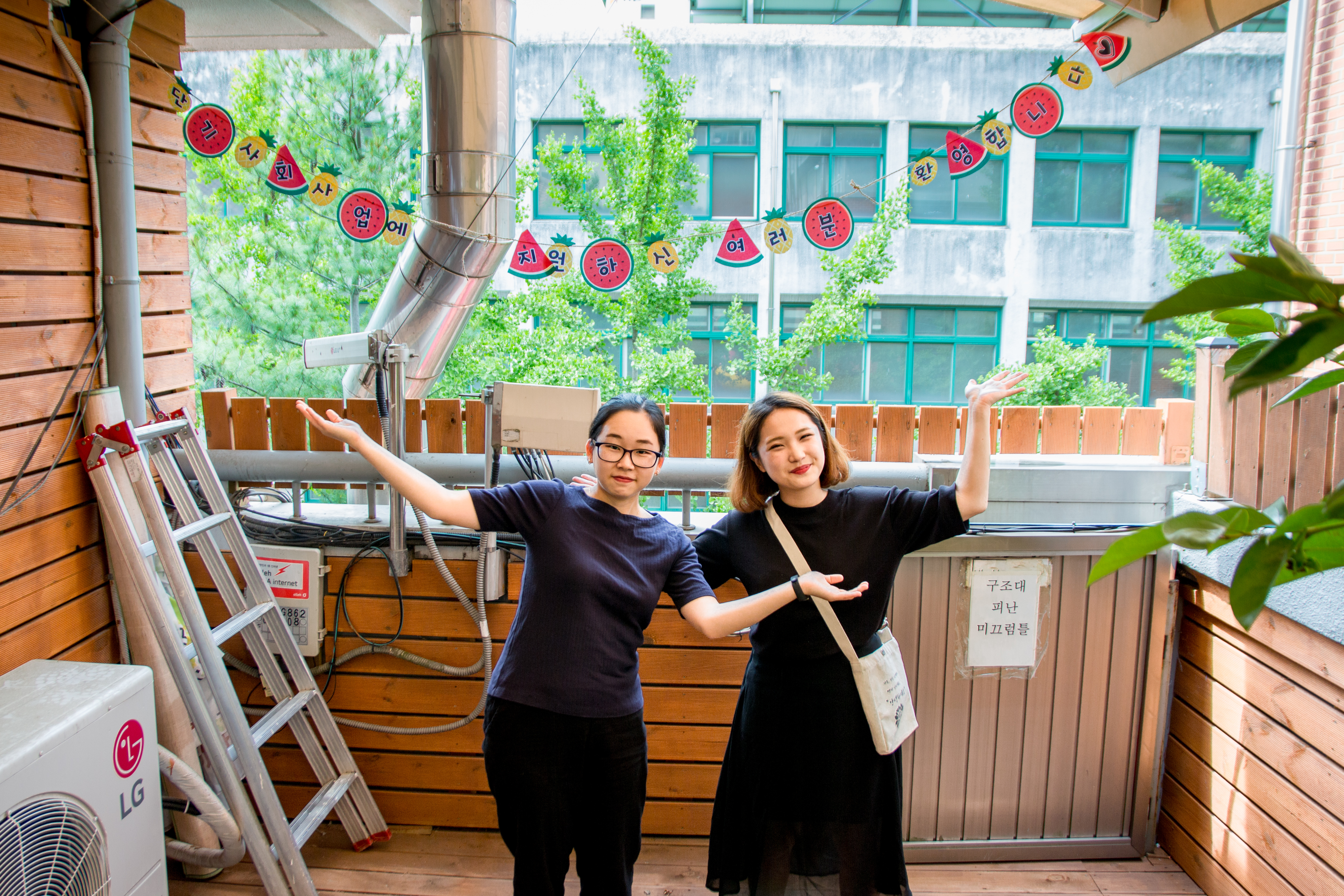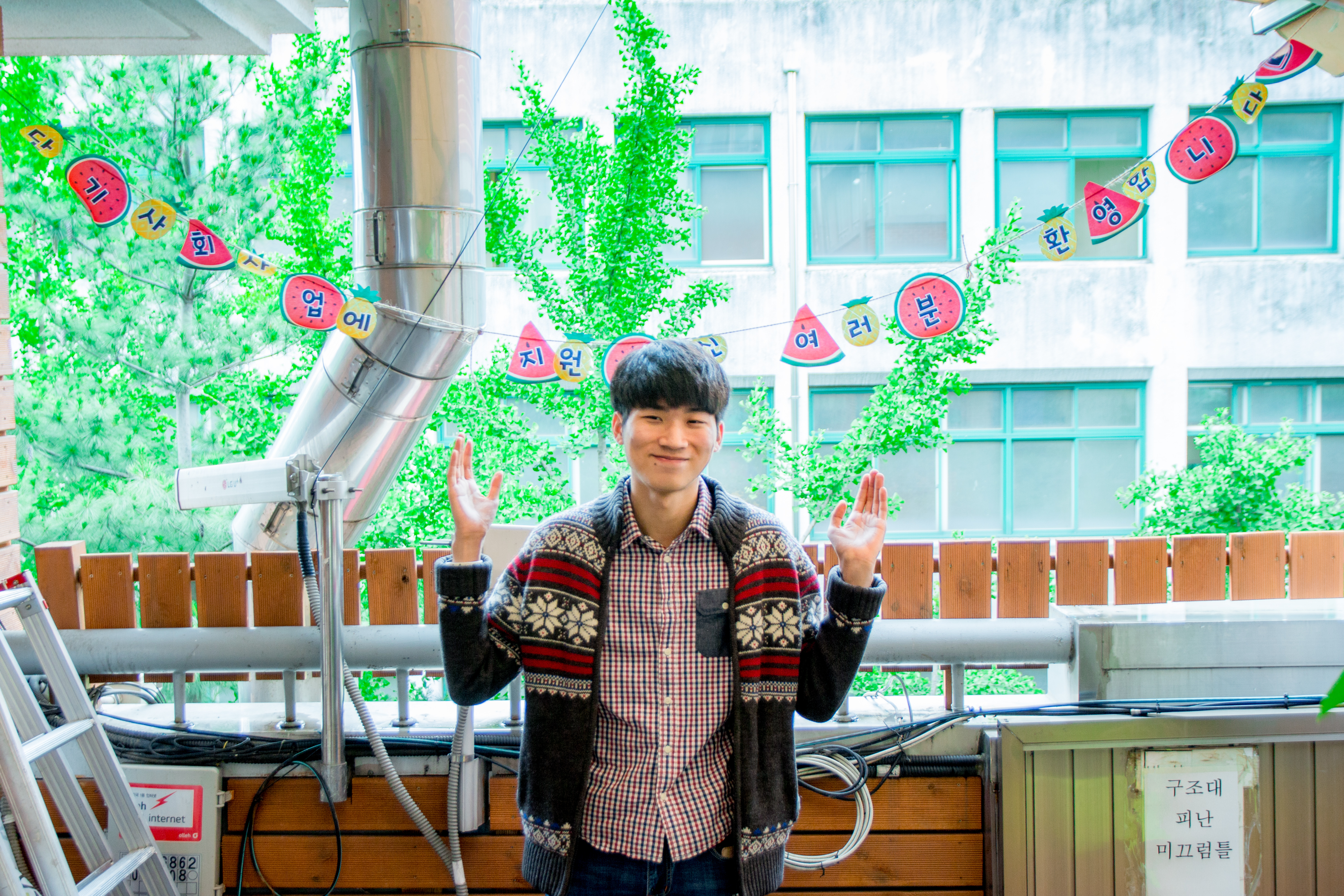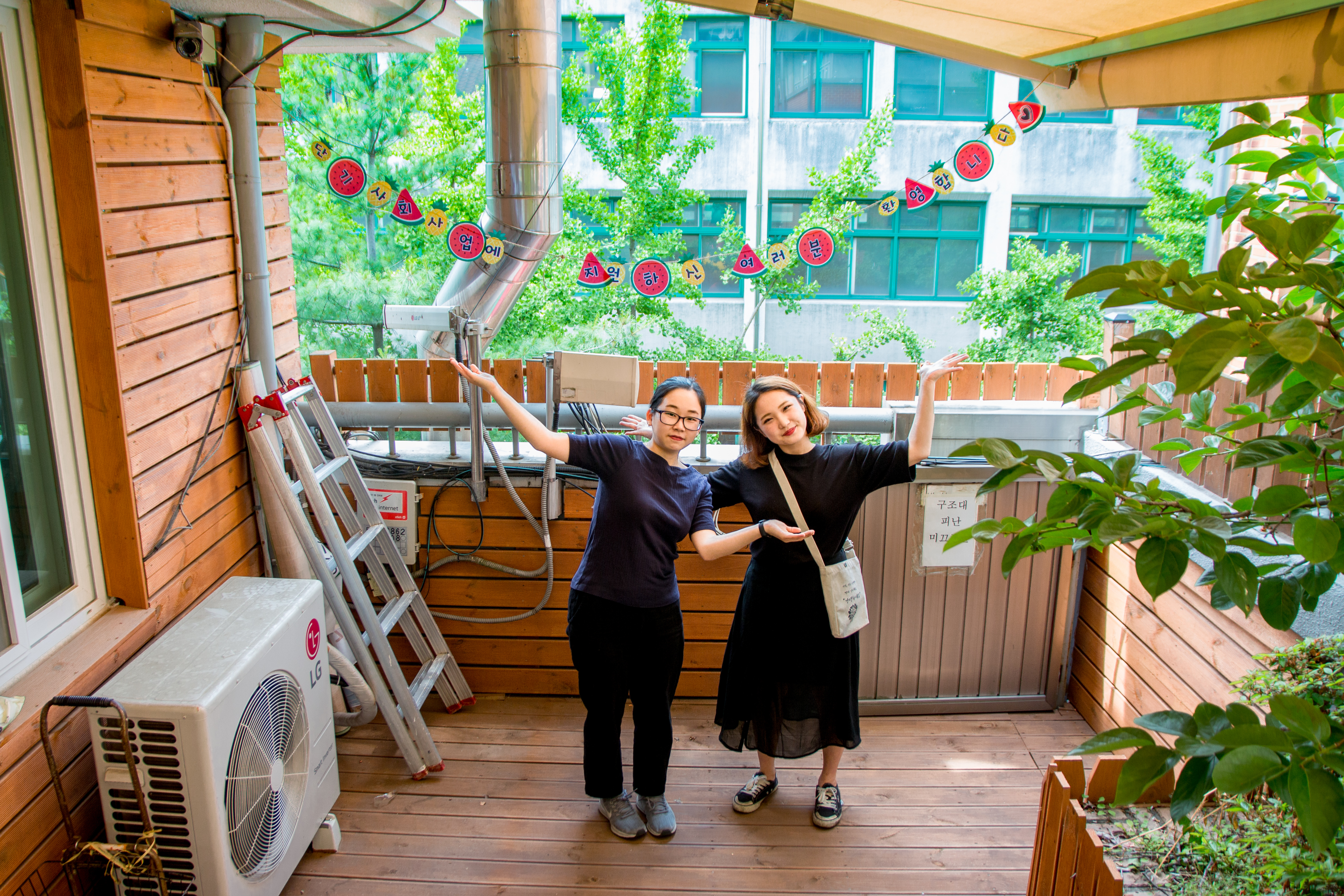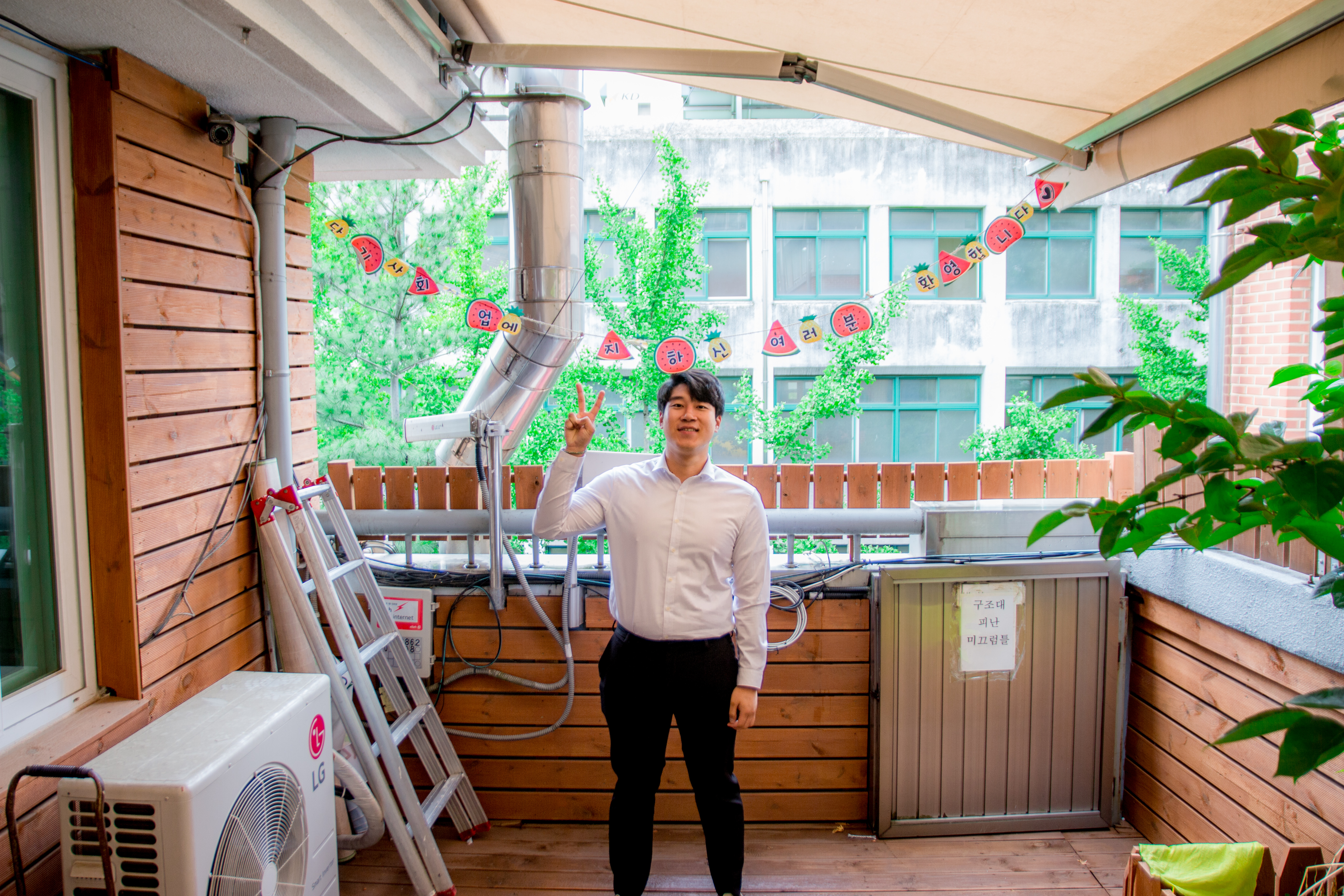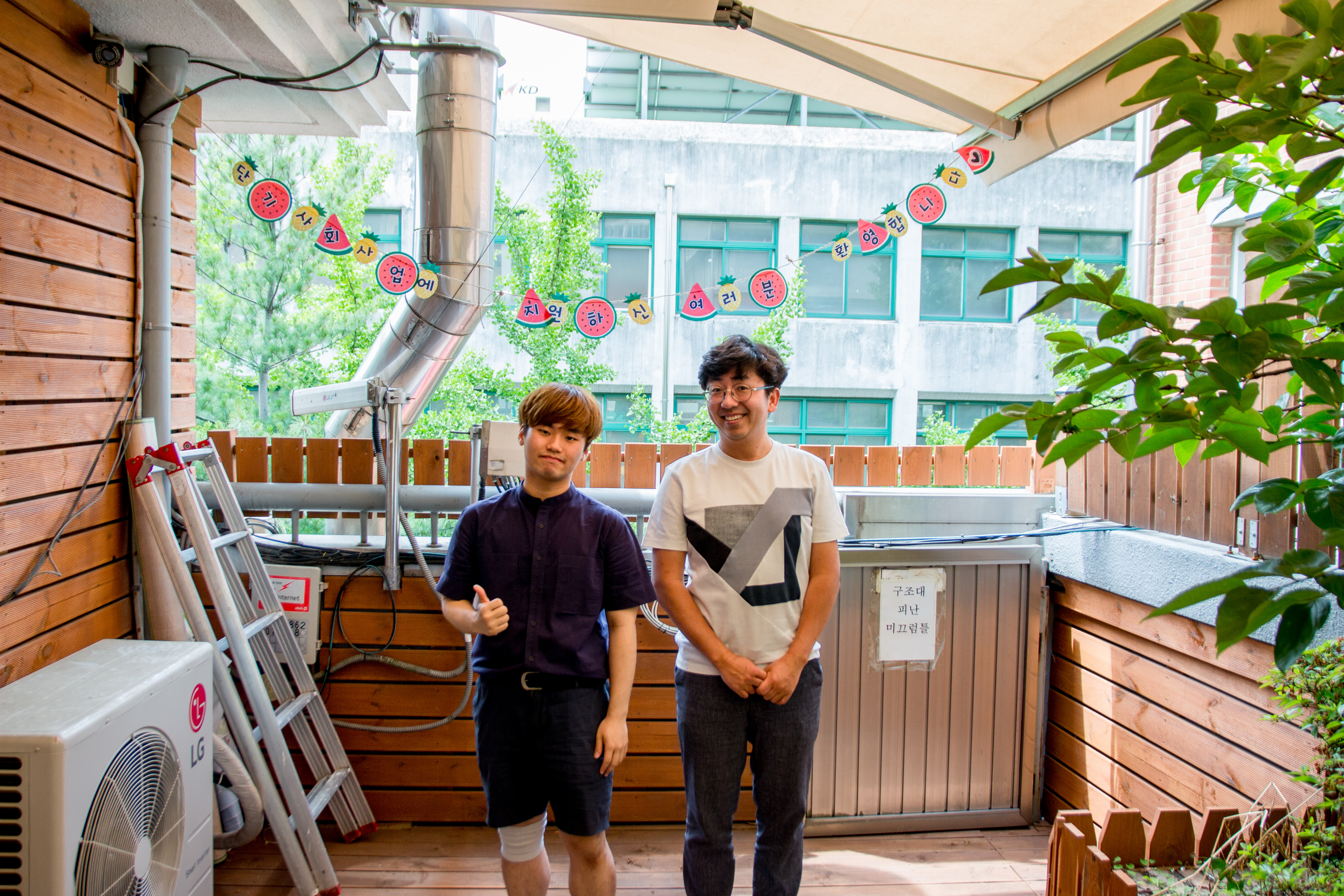 복지관에 새롭게 생긴 3층 야외 휴식처에서 면접을 하기로 했습니다.