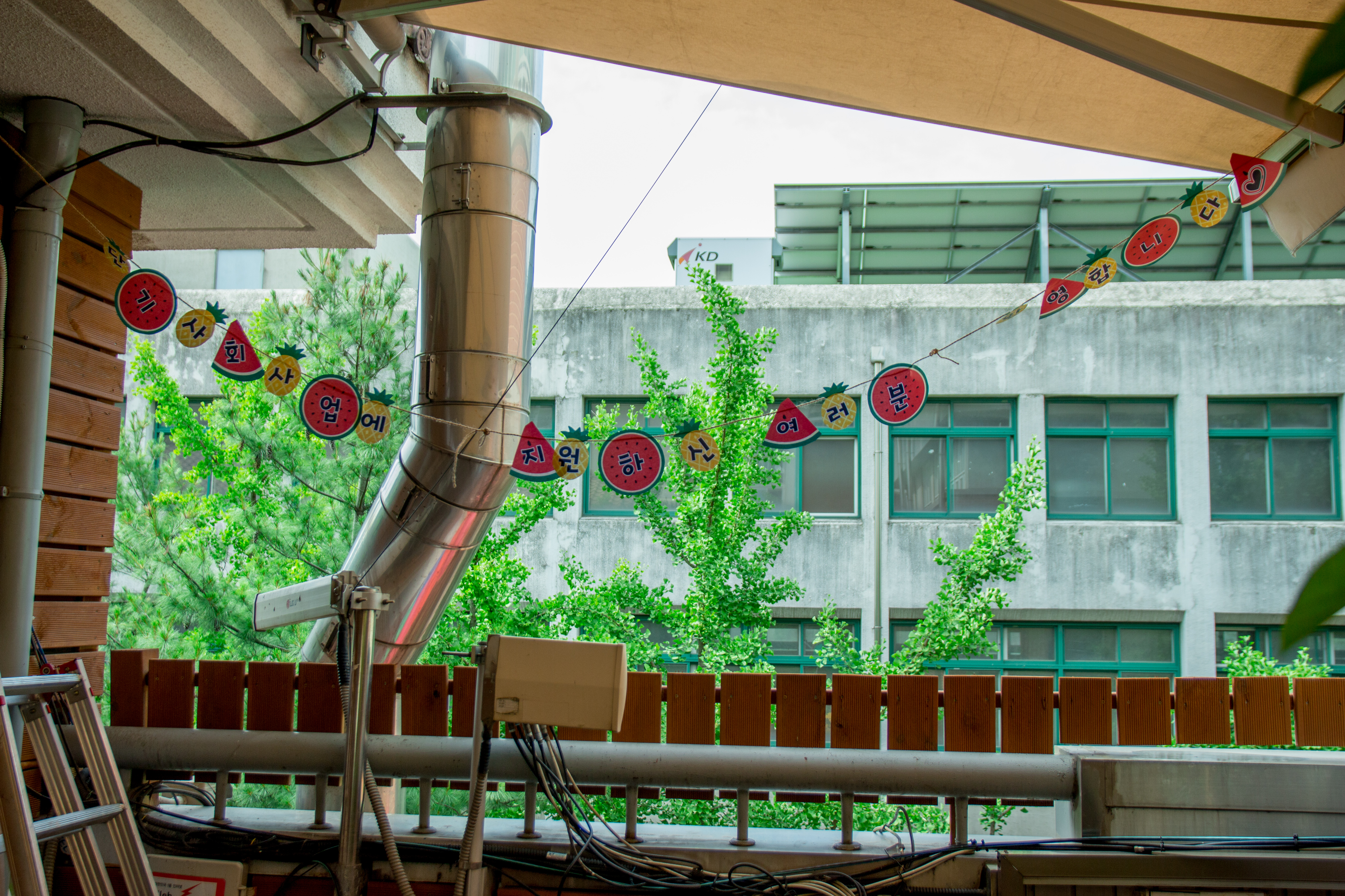 야외 휴식처에 들어서니 경쾌한 음악이 흘러나옵니다.