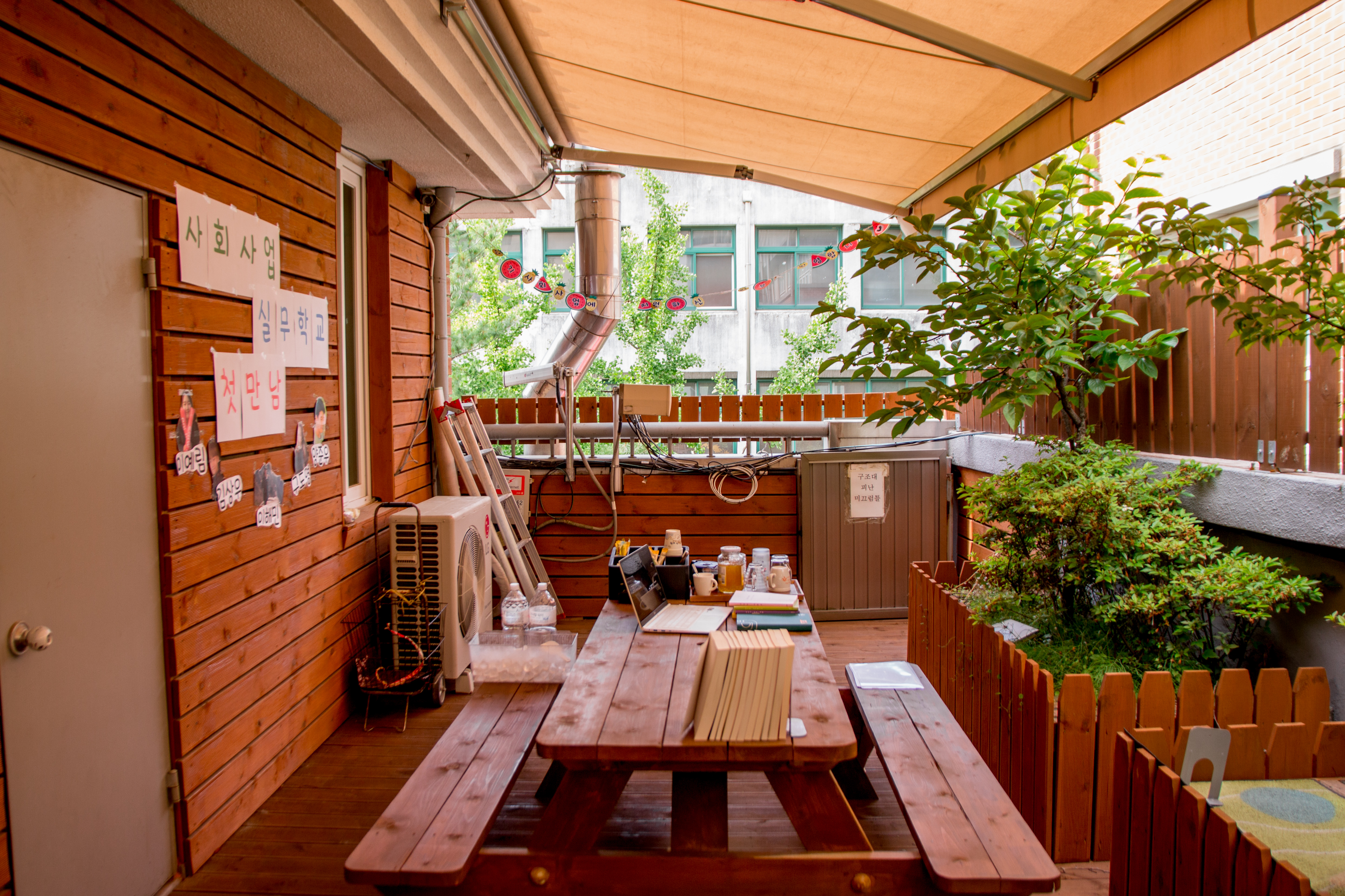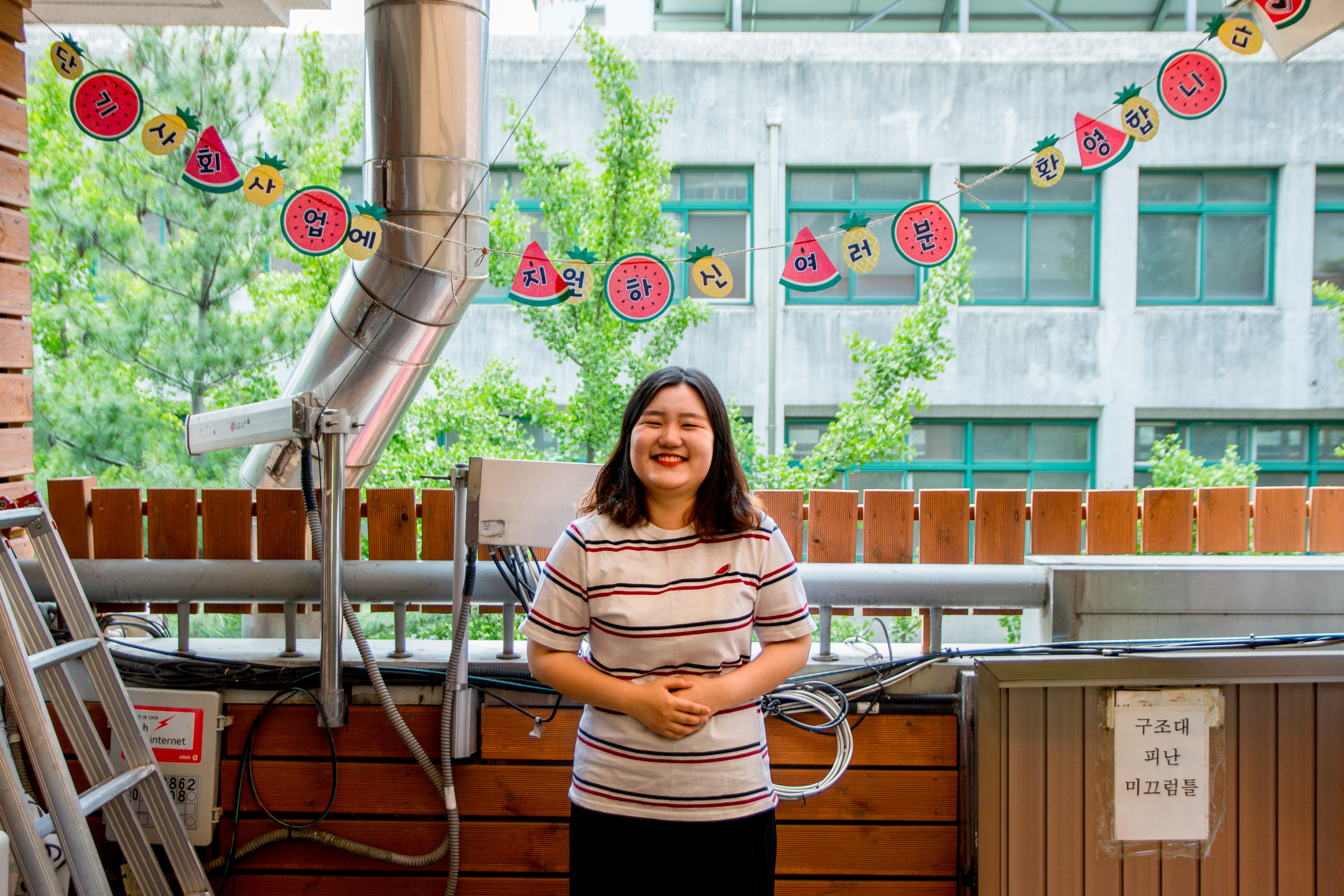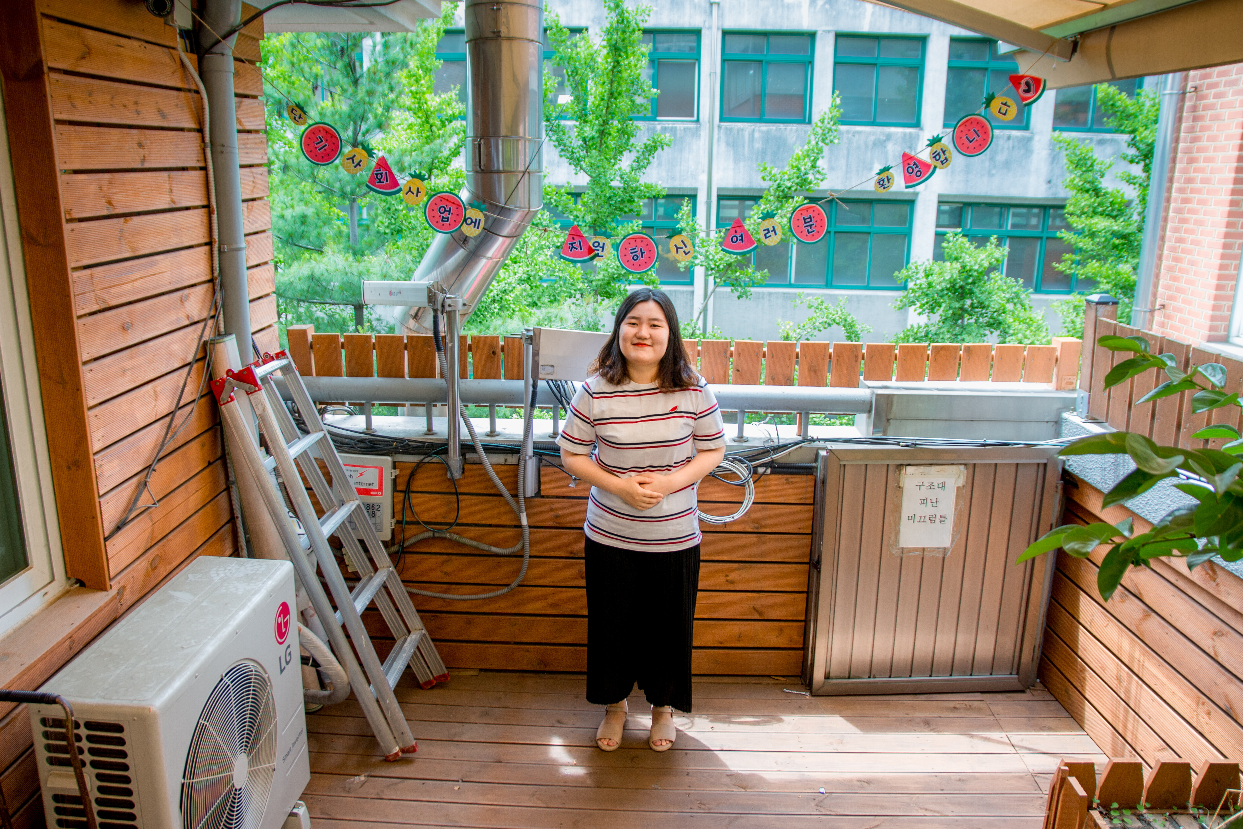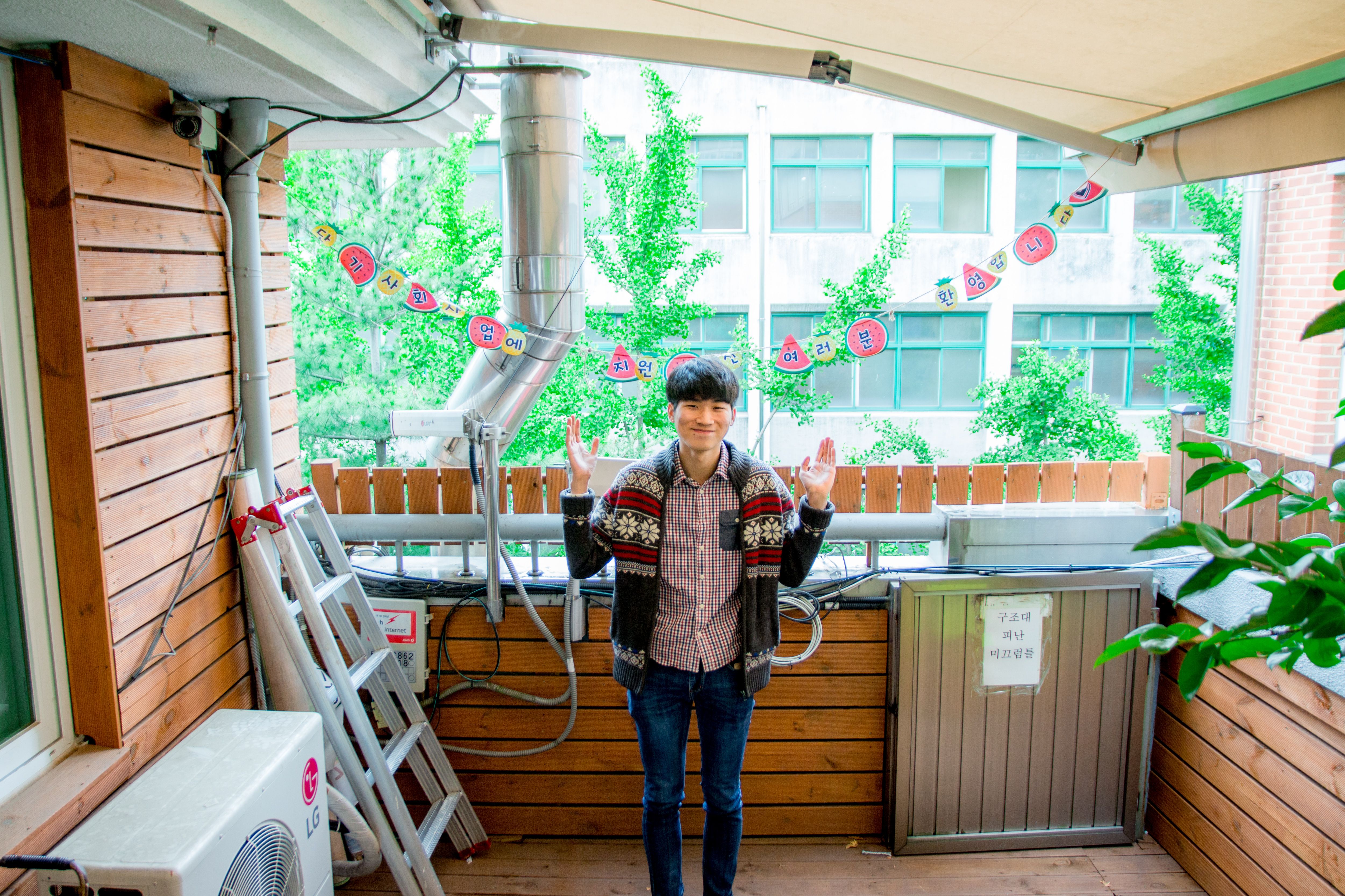 복지관에 새롭게 생긴 3층 야외 휴식처에서 면접을 하기로 했습니다.
