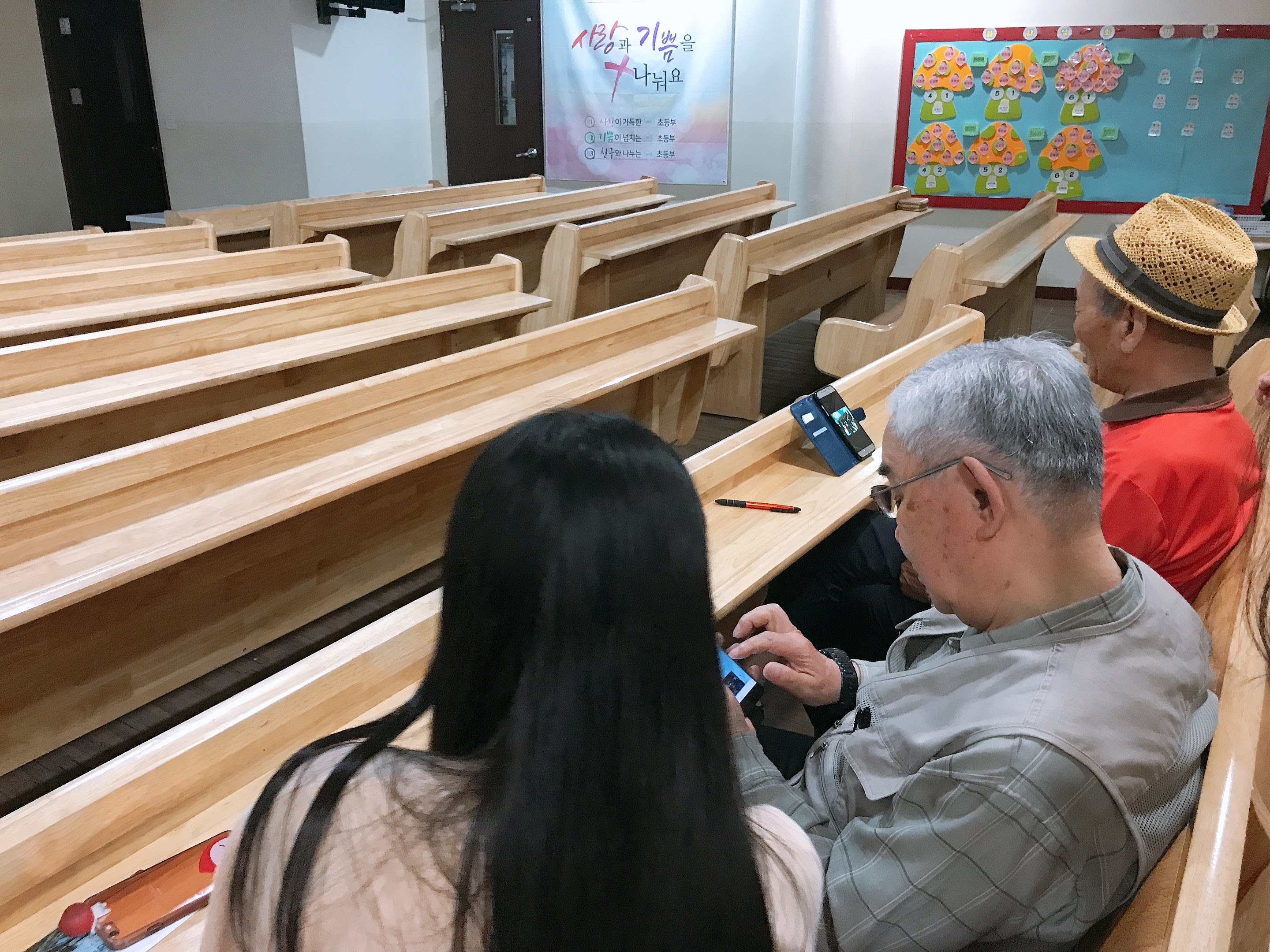 “어르신 휴대폰에 대해 많이 배우셨어요?”