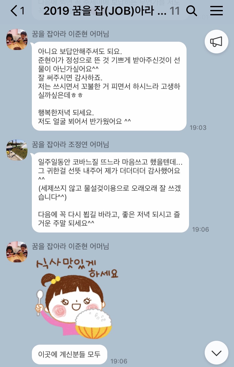 꿈을 잡(JOB)아라 활동하고 있는 정연이 어머님께서