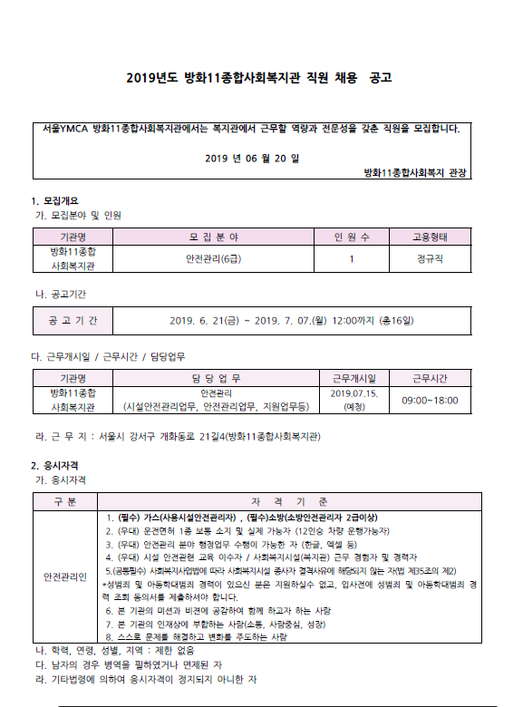 | 장애인주간보호센터햇볕교실 사회복지사 채용공고 (0) | 2019.06.17 |