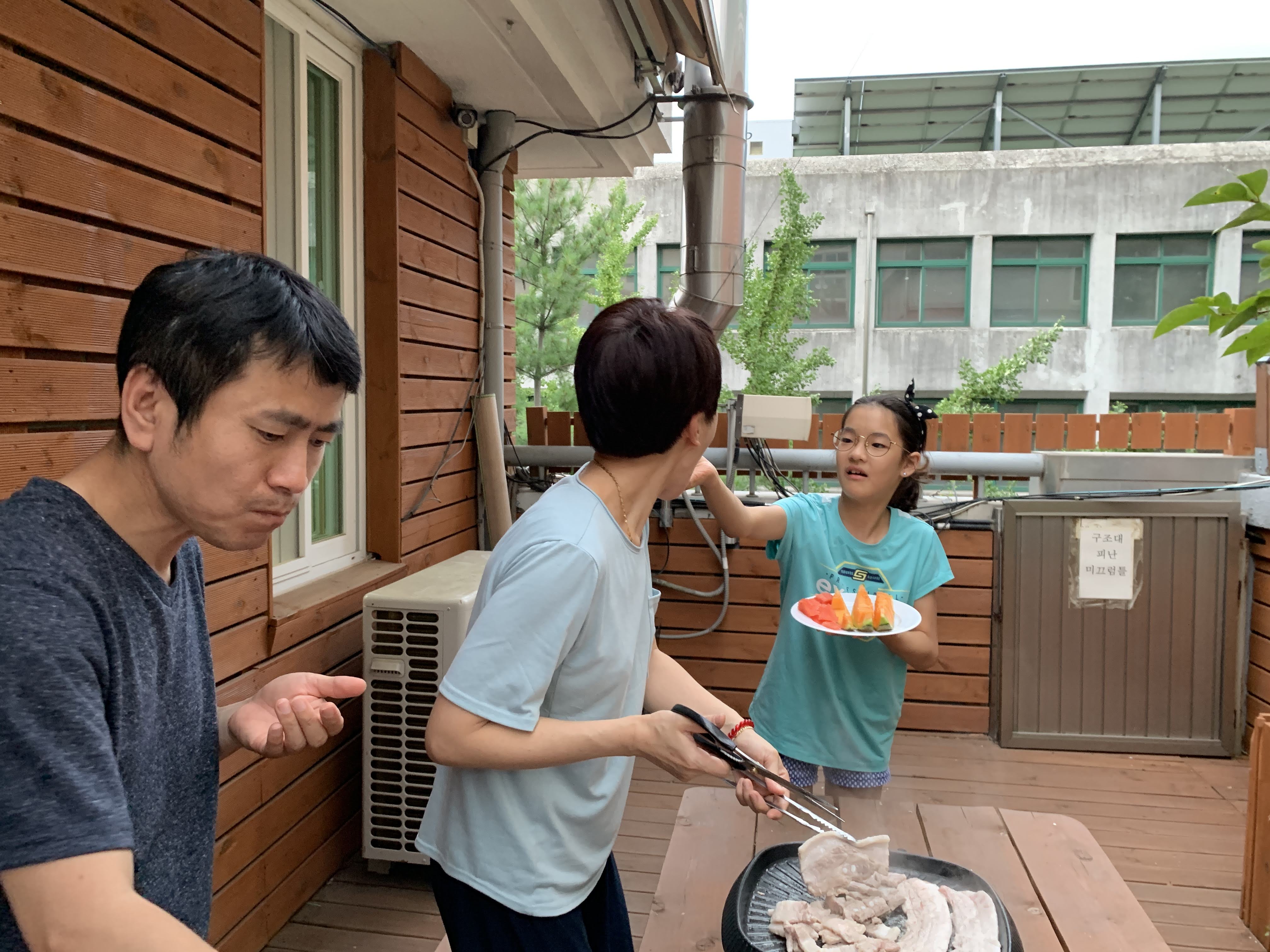 하은 아버님, 다나 어머님, 정우 어머님이 고기를 구워주셨습니다.