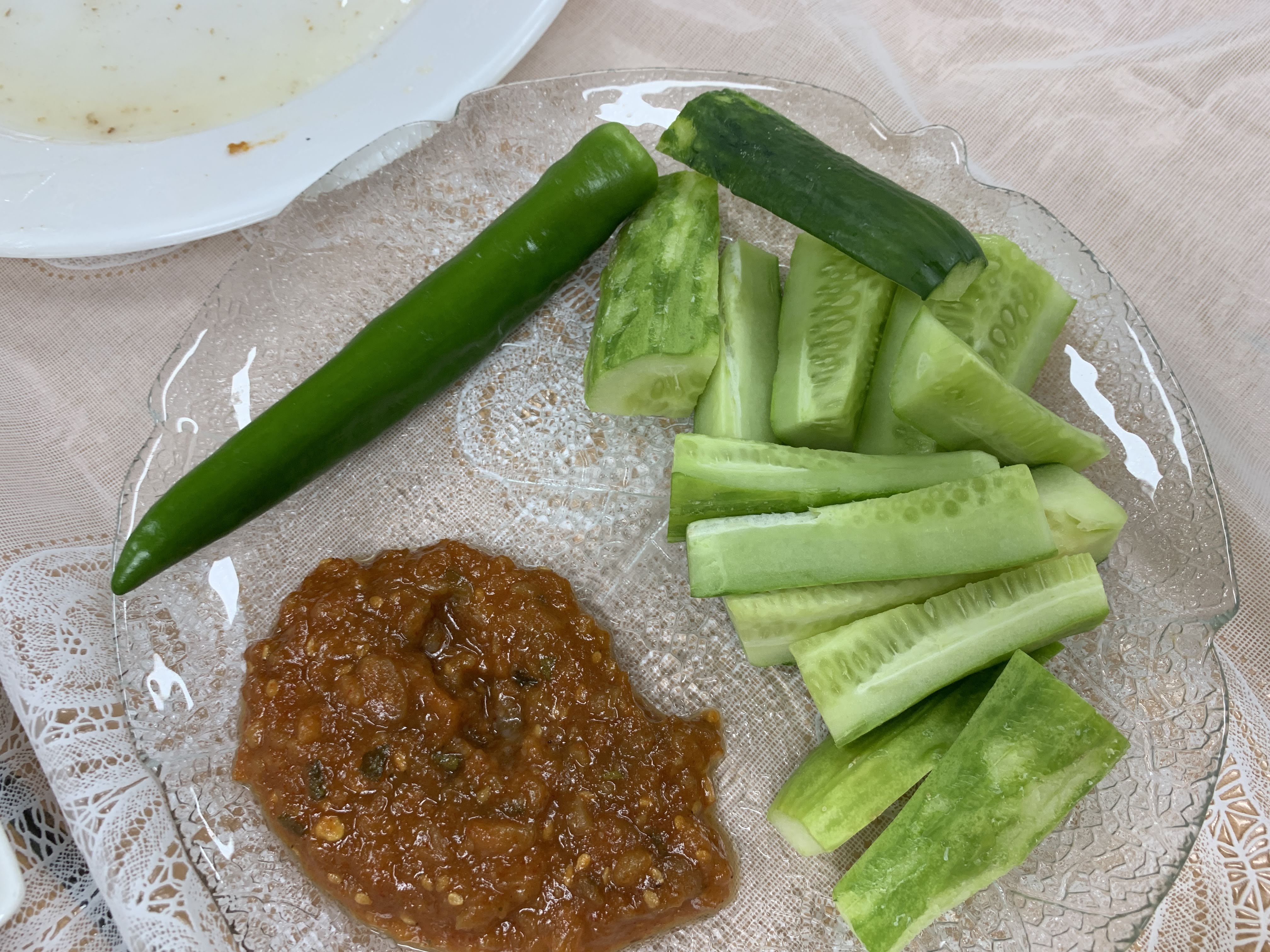 집에서 싸오신 밑반찬, 쌈 채소, 과일까지 풍성합니다.