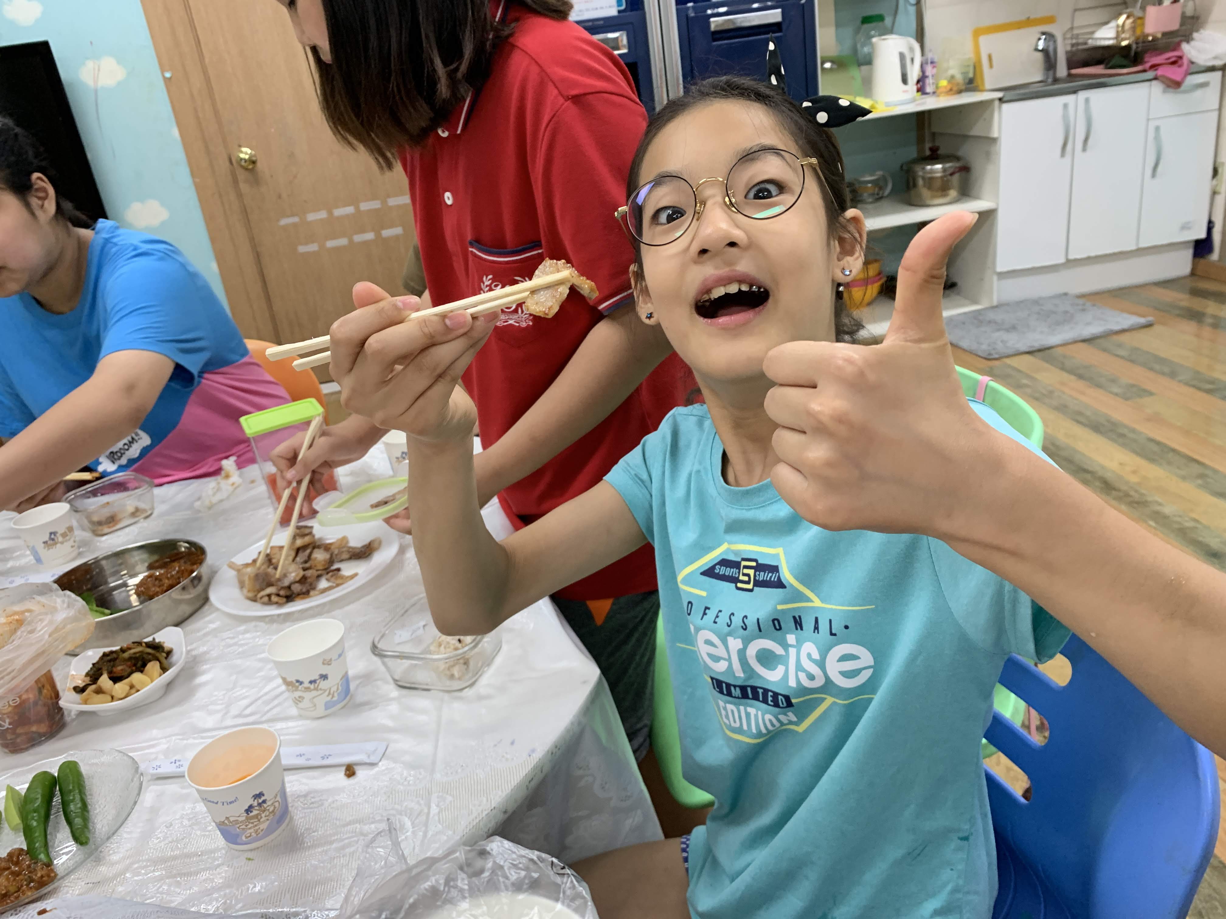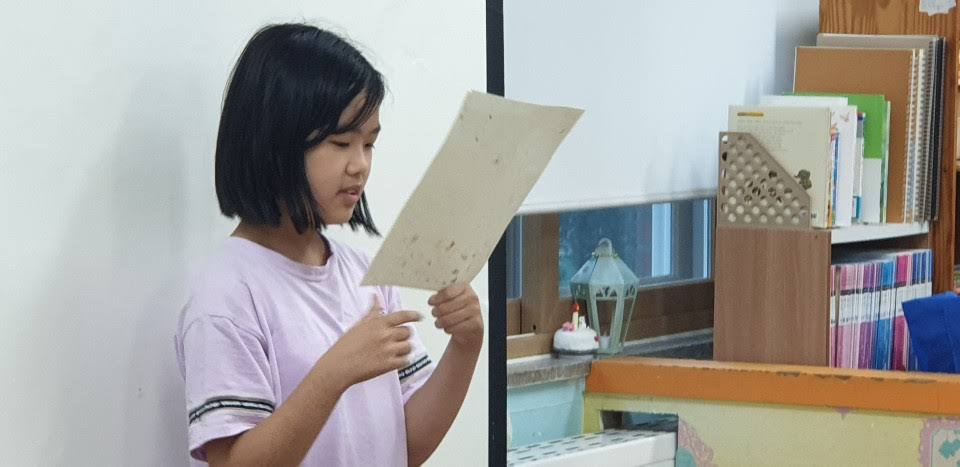 “다나 언니는 칭찬을 해줘서 고마웠어요. 윤이 언니는 잘 못 해도 노력하라고 해줘서 고마웠어요. 정우 오빠가 마임을 할 때 노래를 틀어주어서 고마웠어요. 하은이 언니는 맛있는 과자를 나누어 주어서 고마웠어요. 하민이가 마임을 할 때 호흡을 맞춰줘서 고마웠어요.” - 조이정