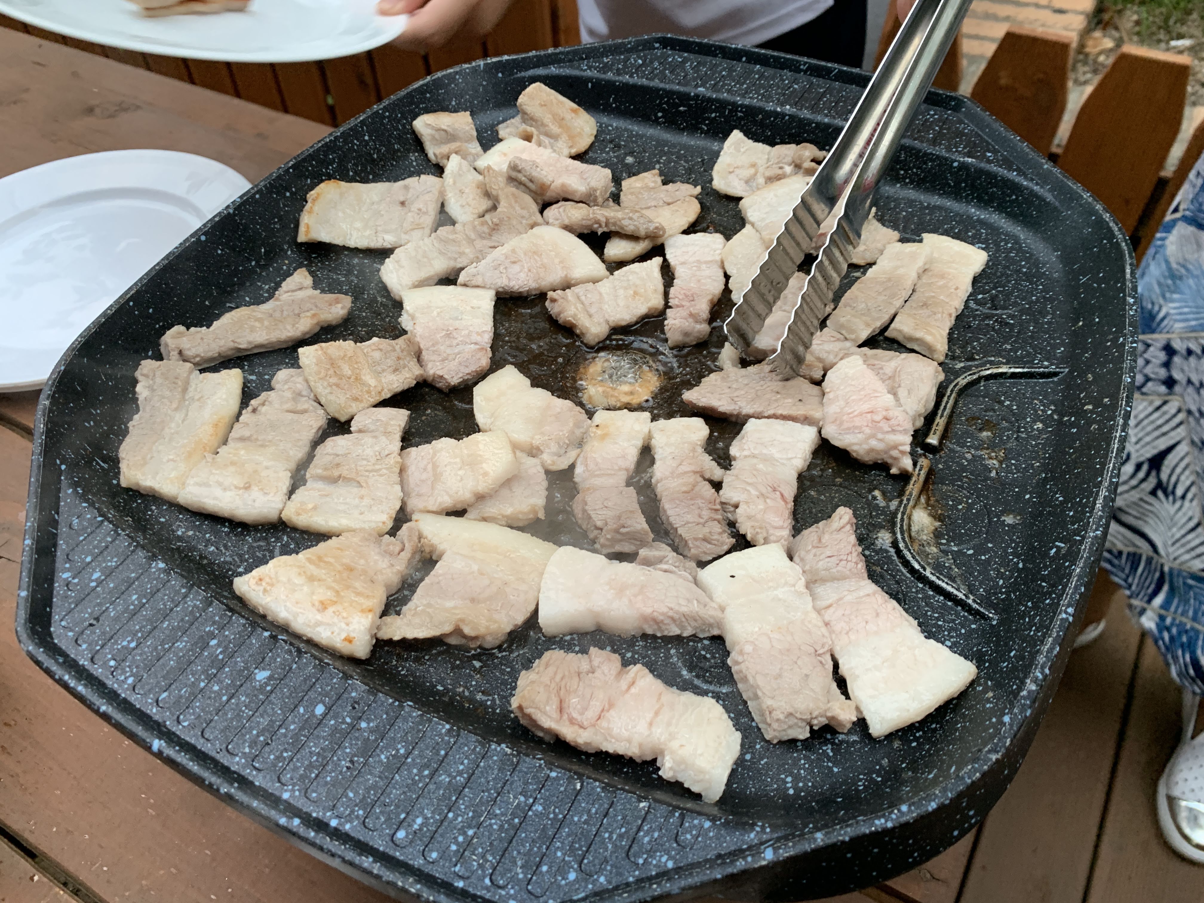 감동이 넘치는 시간이 끝나고 삼겹살 파티 했습니다.