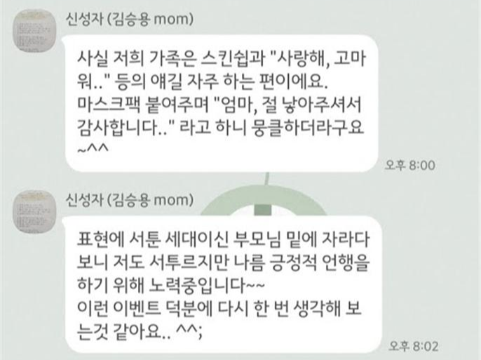 학부모님은 가족에게 마음 담은 문자 보내는 캠페인 진행했습니다.