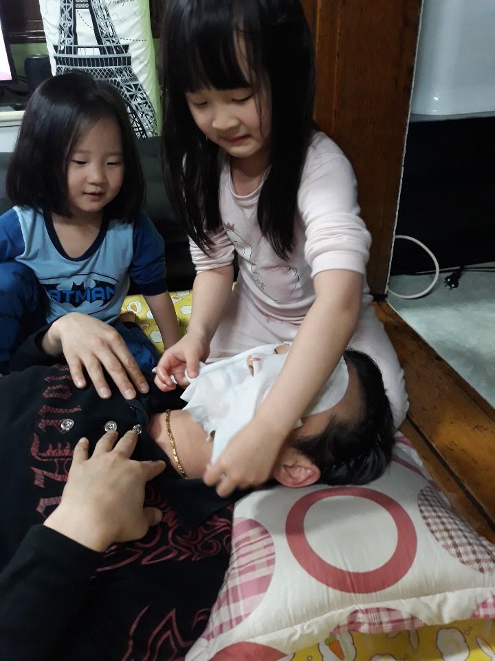 아이들은 학부모님께 마스크팩을 붙여드리며 감사를 표현하는 캠페인과